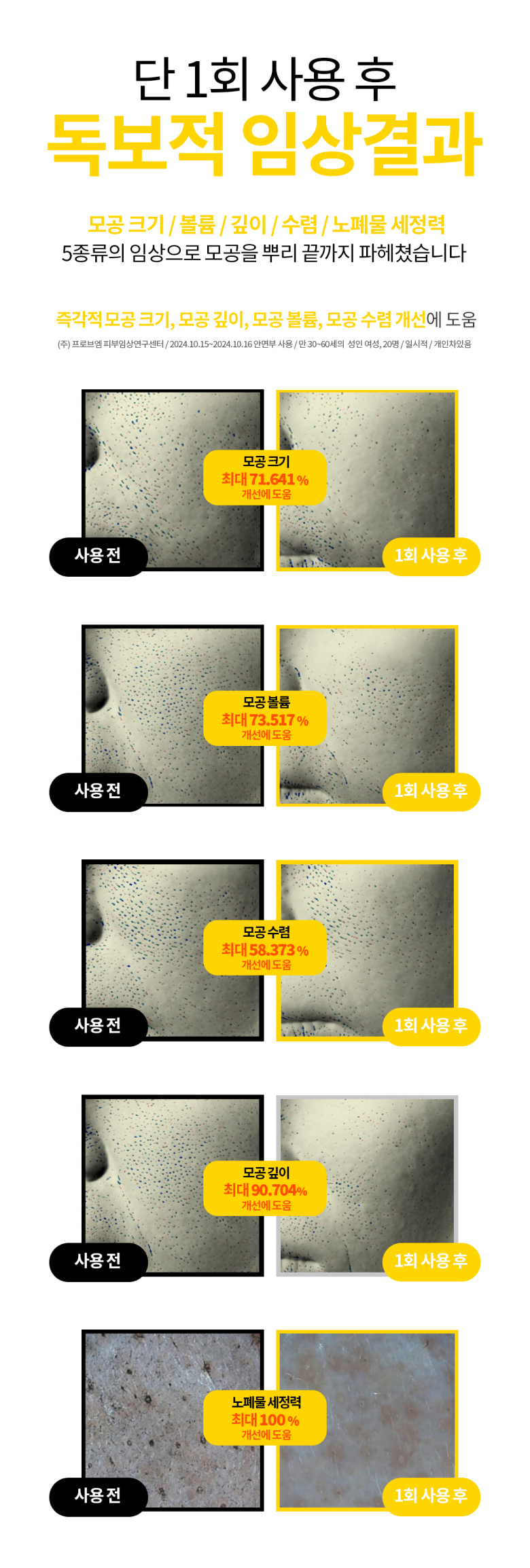 - Pore Depth Reduction: 90.70% improvement