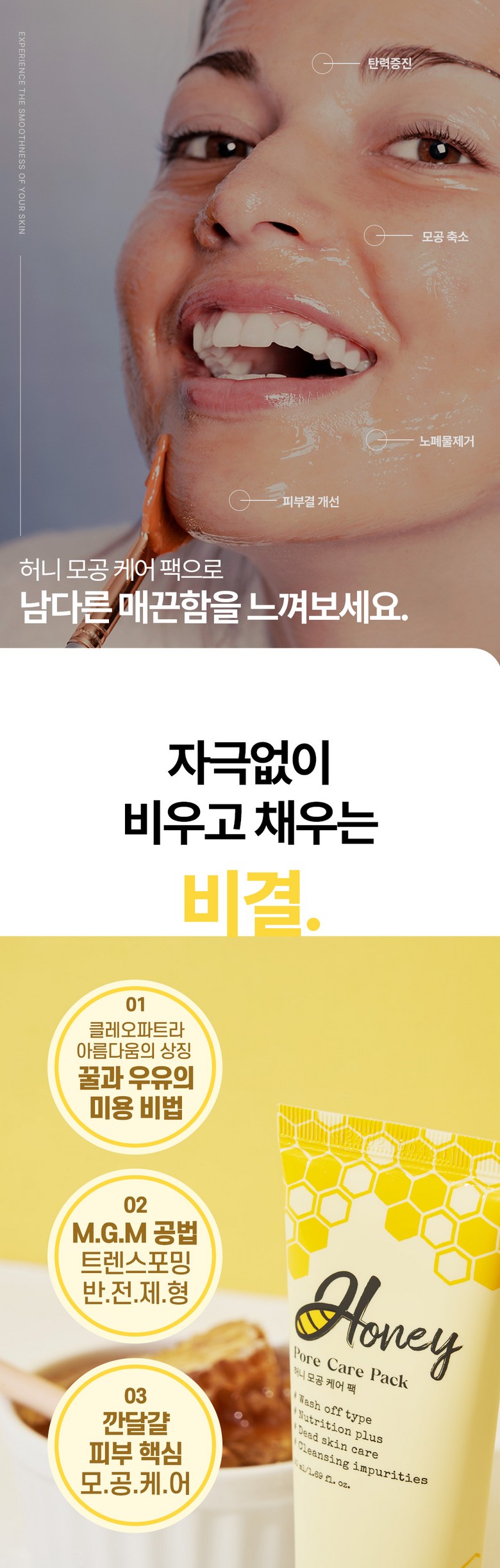 - Transforms: Rolling the product creates a honey milk meringue that dissolves waste in pores.
