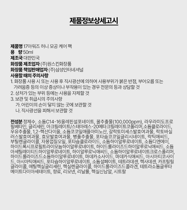 17Hours Honey Pore Care Pack 50ml