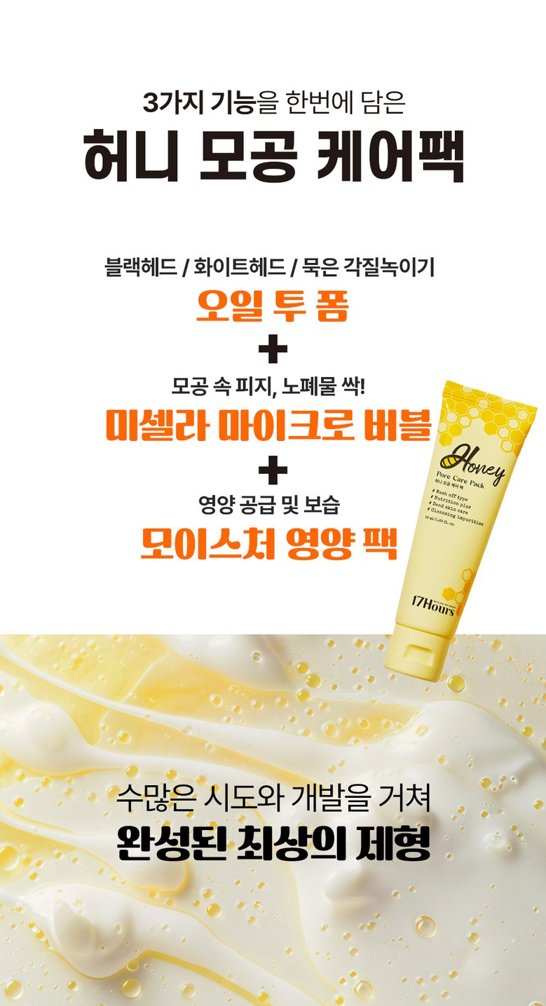 I recently tried the 17Hours Honey Pore Care Pack and was pleasantly surprised by its effectiveness. The key feature of this product is its honey-rich formula, which not only deeply cleanses but also nourishes the skin with 100,000 ppm of honey extract. After just two minutes, I noticed a significant reduction in blackheads and an improvement in my skin texture. My pores felt tighter and more refined, making my face look smoother overall. It truly delivers on its promise to rejuvenate the skin quickly without causing irritation.