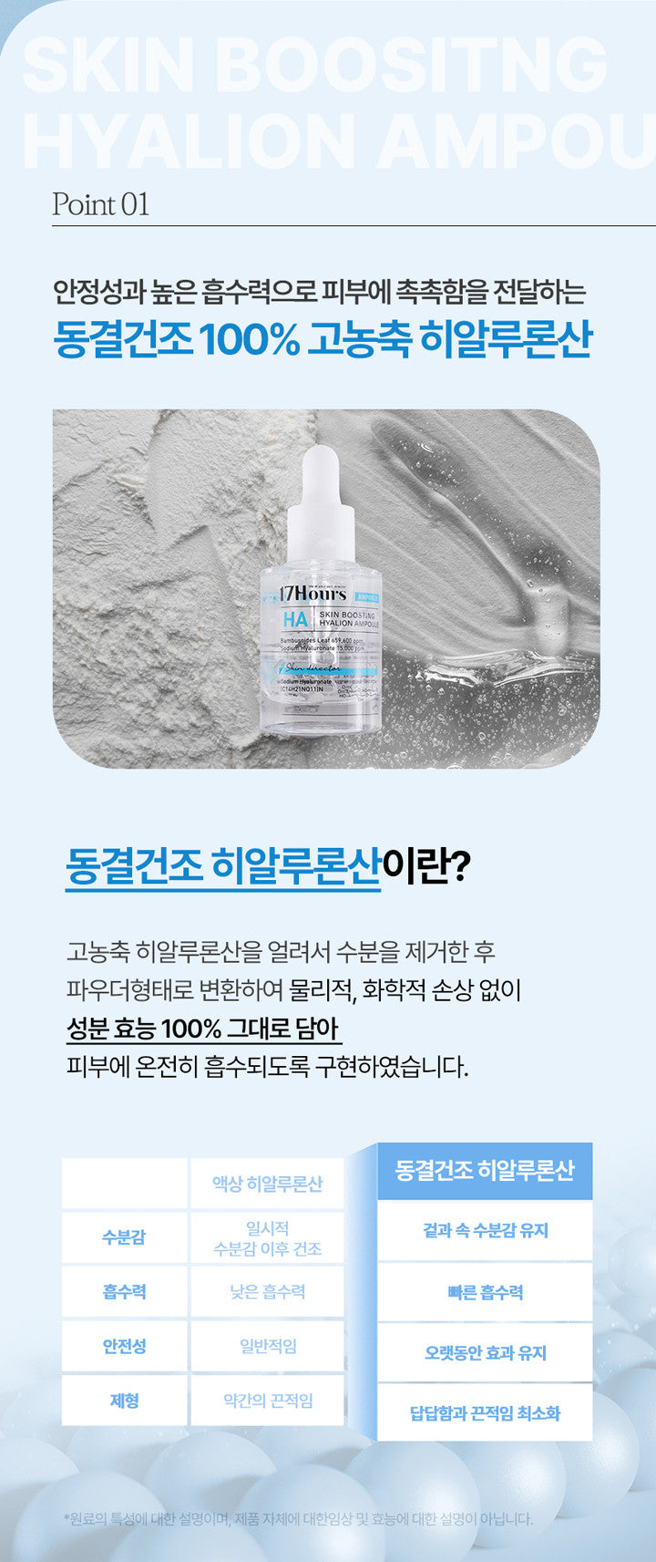 Point 1: 100% Concentrated Freeze-Dried Hyaluronic Acid