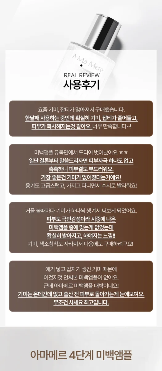Hey, check it out! I’ve been trying this A Ma Mere Whitening Solution Ampoule for a couple of weeks now. I can’t believe how my freckles are starting to lighten up without any harsh irritation. My elbows used to be pretty dark from sun exposure but man, they’ve definitely evened out. It’s super easy—4 steps and you’re done in no time! It feels great knowing I’m putting something gentle on sensitive areas too—not like some other products that left me red as a tomato before lol. Anyway, totally worth the hype if you ask me!