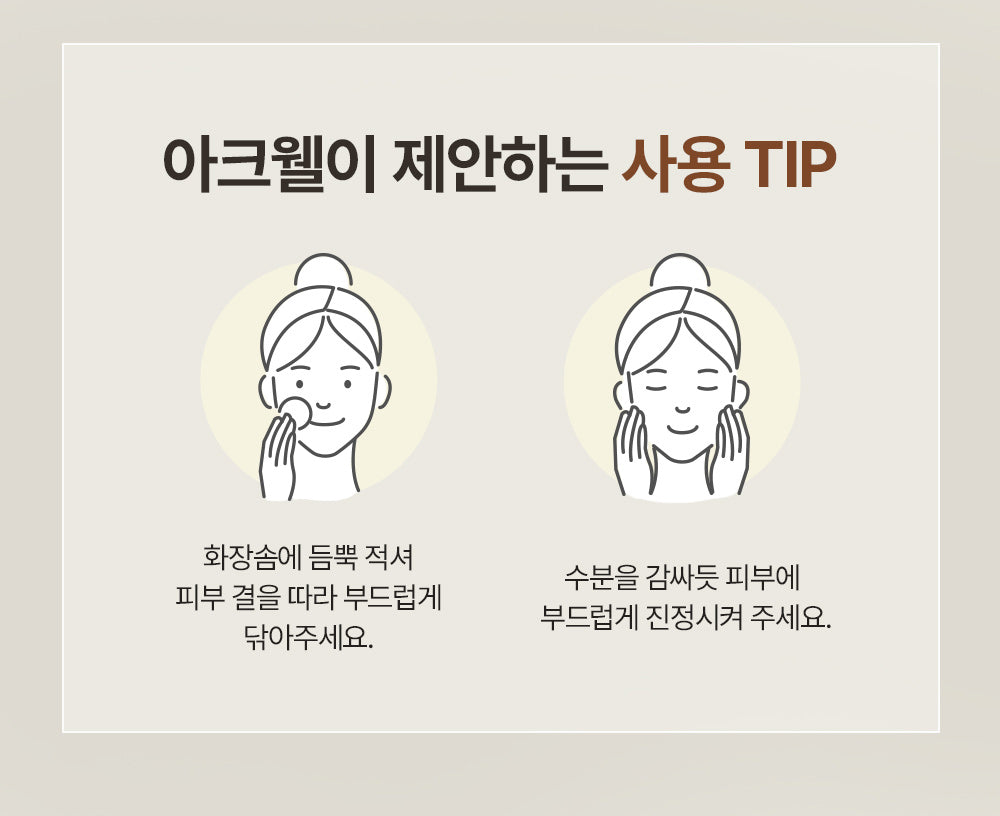 - Application: Soak a cotton pad with the toner and gently wipe from the inside of the face to the outside along the skin texture.