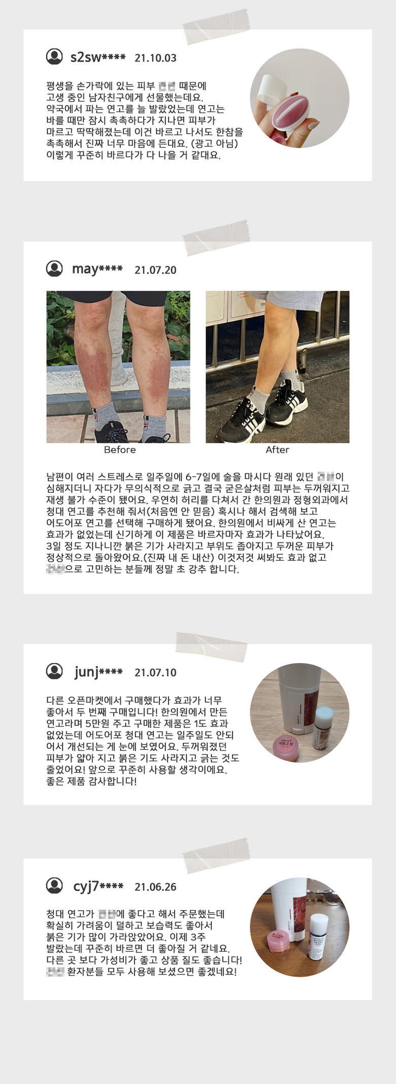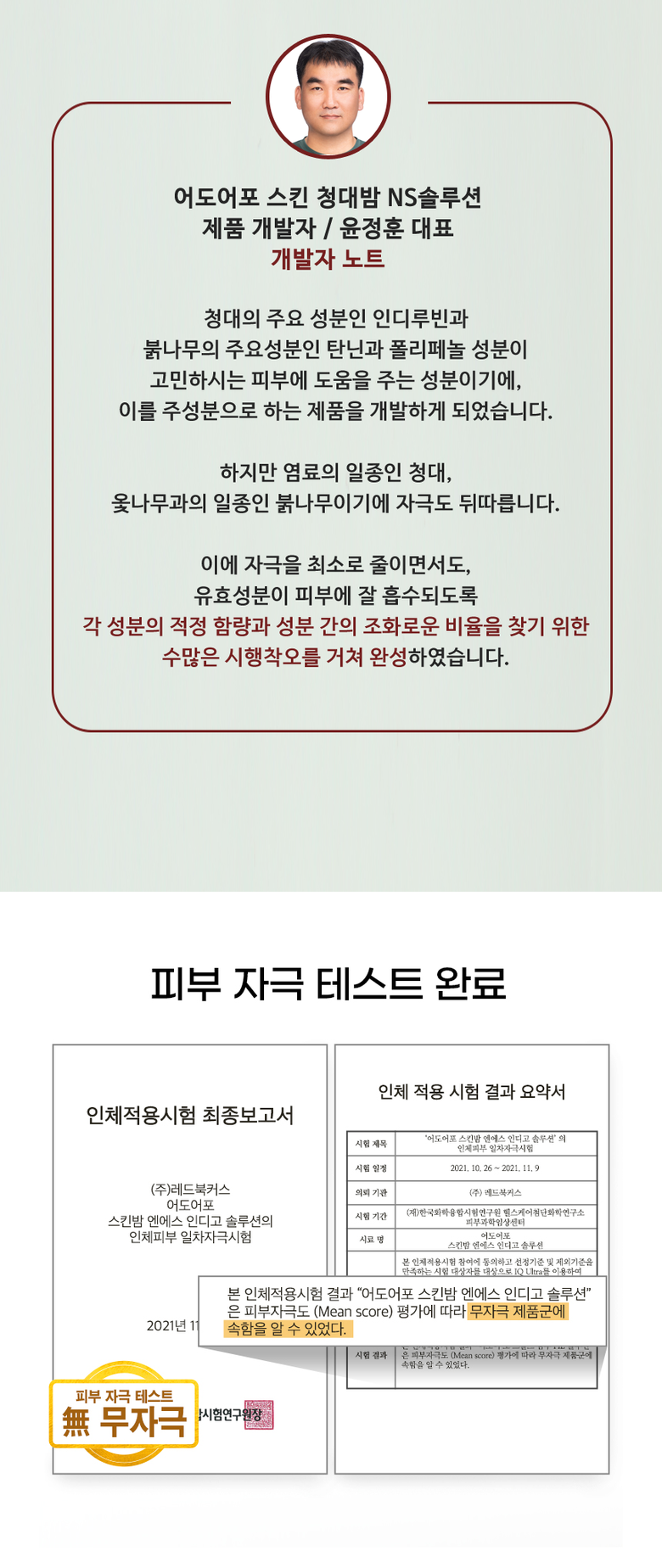 - Developer’s Note by Yoon Jeong-Hoon: Understanding the potential irritations from green indigo and Rhus Javanica, this product has been meticulously formulated through extensive trials to minimize irritation while maximizing absorption and effectiveness of the active ingredients.