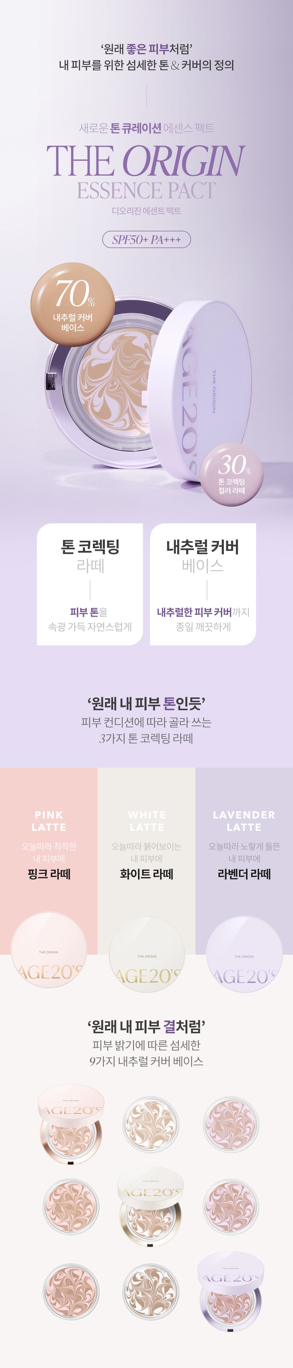 For those with flushed skin, our WHITE LATTE option is ideal. This blend also features a 70% base and 30% color latte formula, but with a white tone-up powder and Panthenol for soothing effects. Both variants share the hallmark benefits of our Origin Essence Pact: original brilliance, a uniform, thin layer of cover, and natural tone correction.