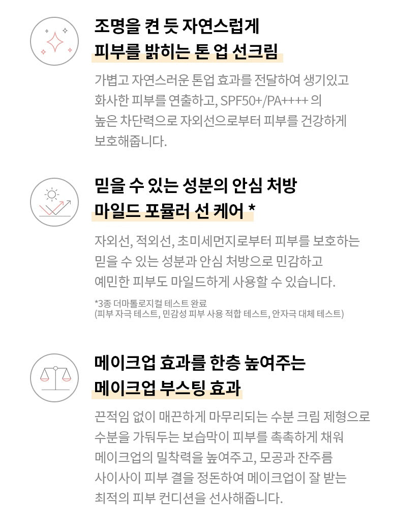 Reliable ingredients that protect the skin from UV rays, infrared rays, and ultra-fine dust and a safe prescription, so even sensitive and sensitive skin can be used mildly.