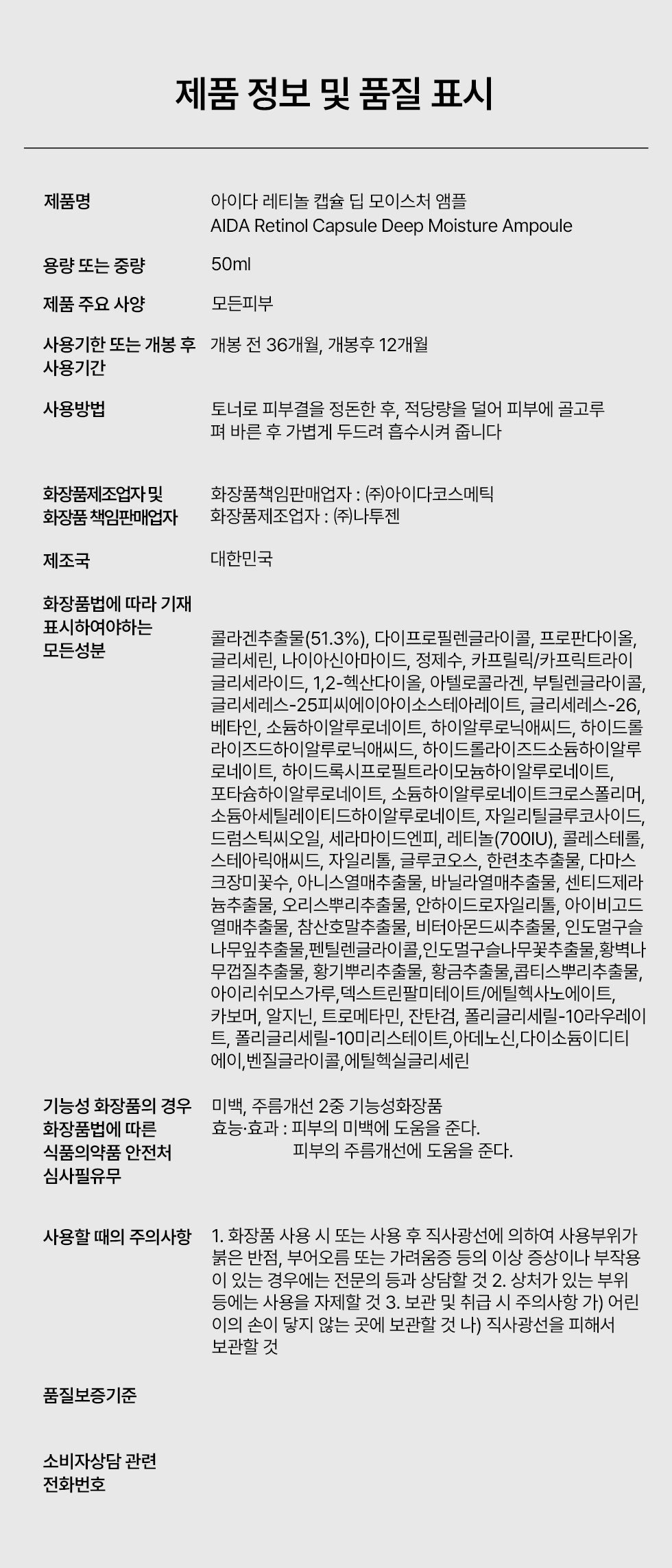 AIDA Retinol Capsule Deep Moisture Ampoule 50ml
