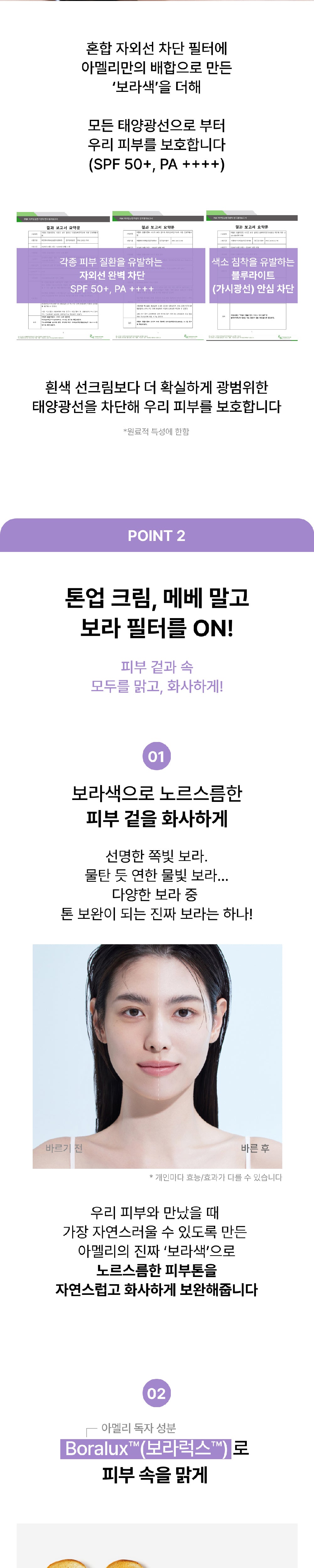 Experience superior UV protection with Amelie’s Purple Sun Filter, a blend of UV protection filters and Amelie’s exclusive purple formula. This advanced sunscreen offers SPF50+ PA++++ to block both harmful UV rays and visible light, outperforming standard white sunscreens.