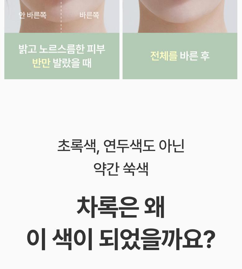 To neutralize redness, the cushion uses green as the primary color, which works as a complementary shade. - STEP 2: Temperature Balance