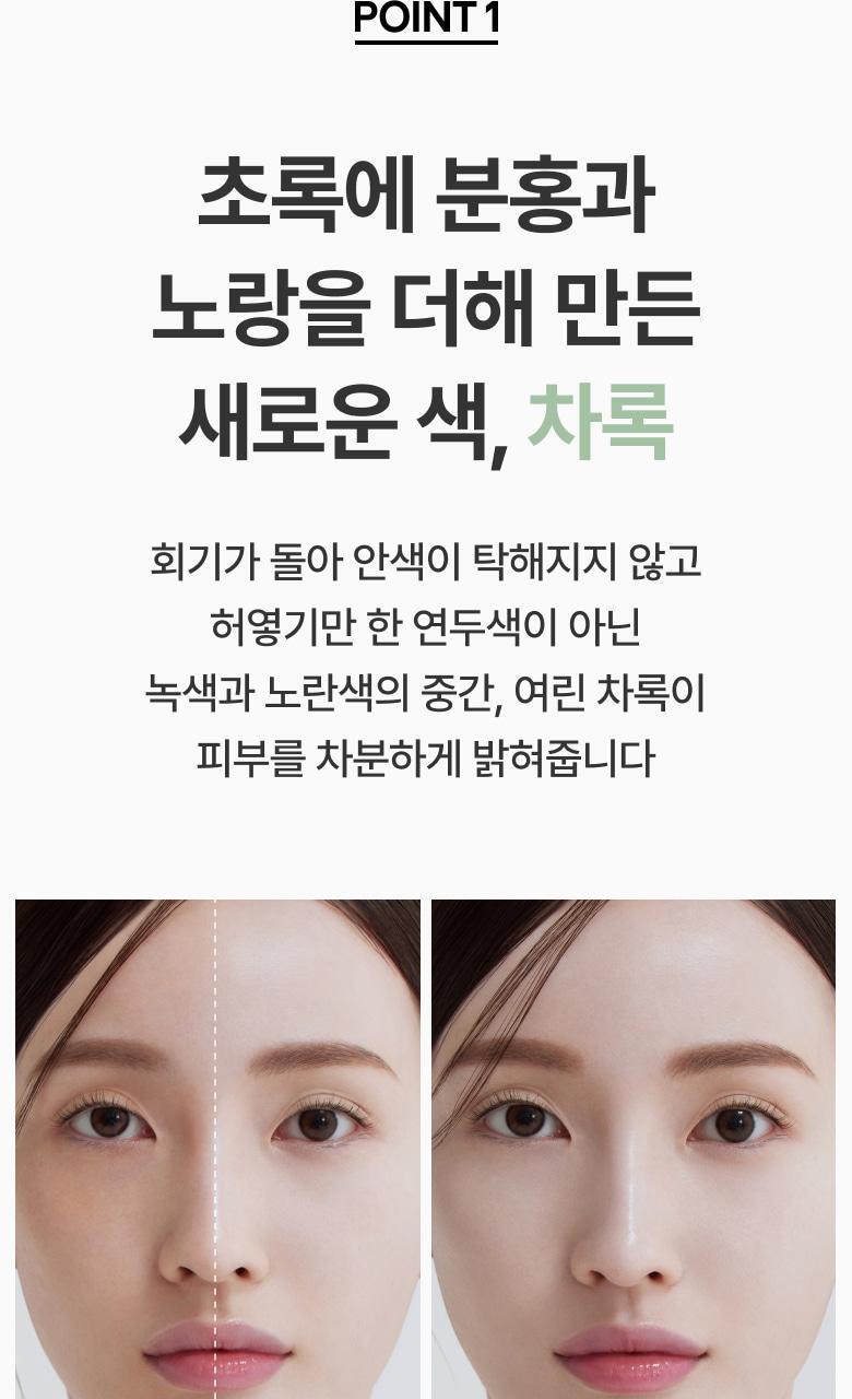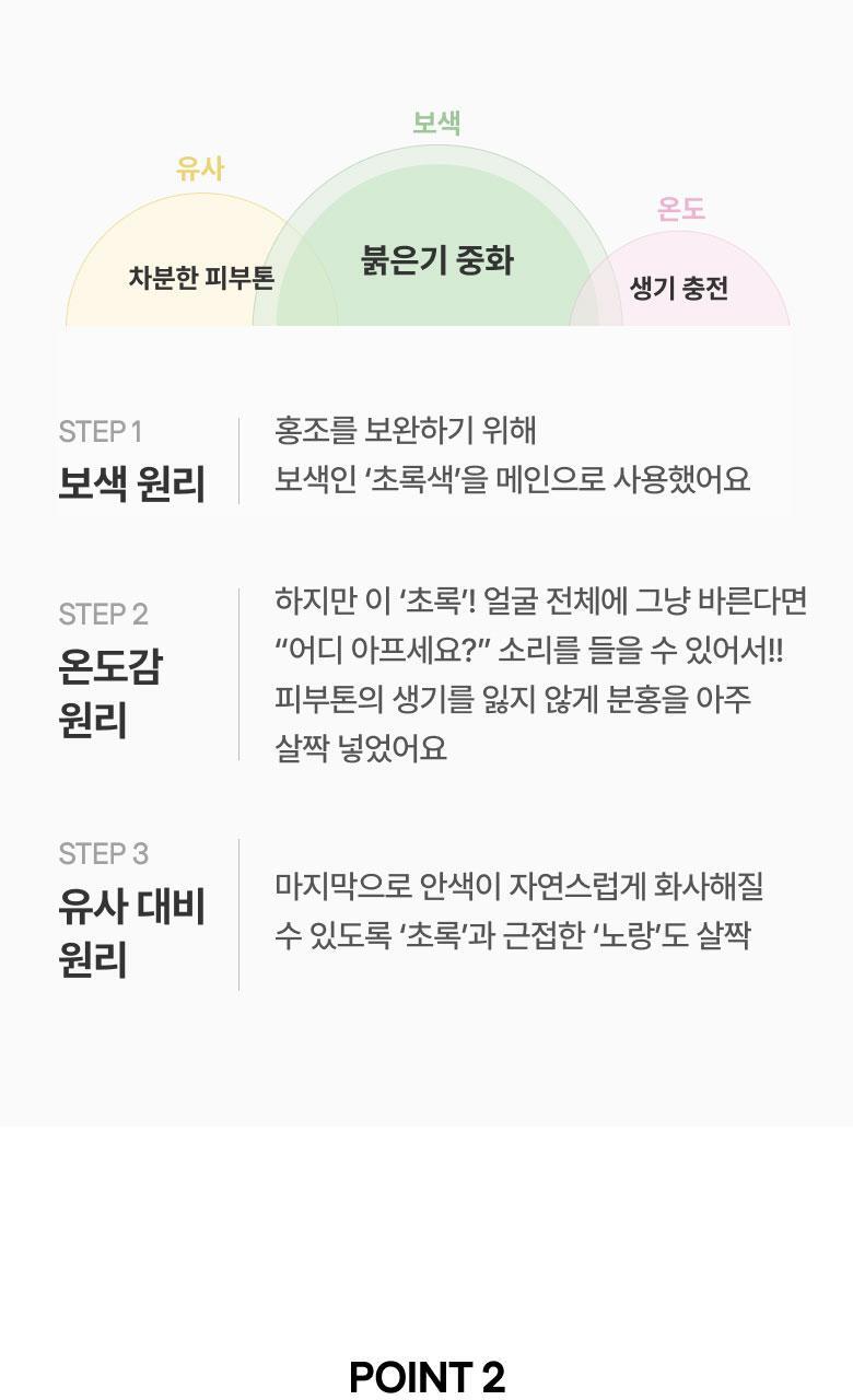 To neutralize redness, the cushion uses green as the primary color, which works as a complementary shade. - STEP 2: Temperature Balance