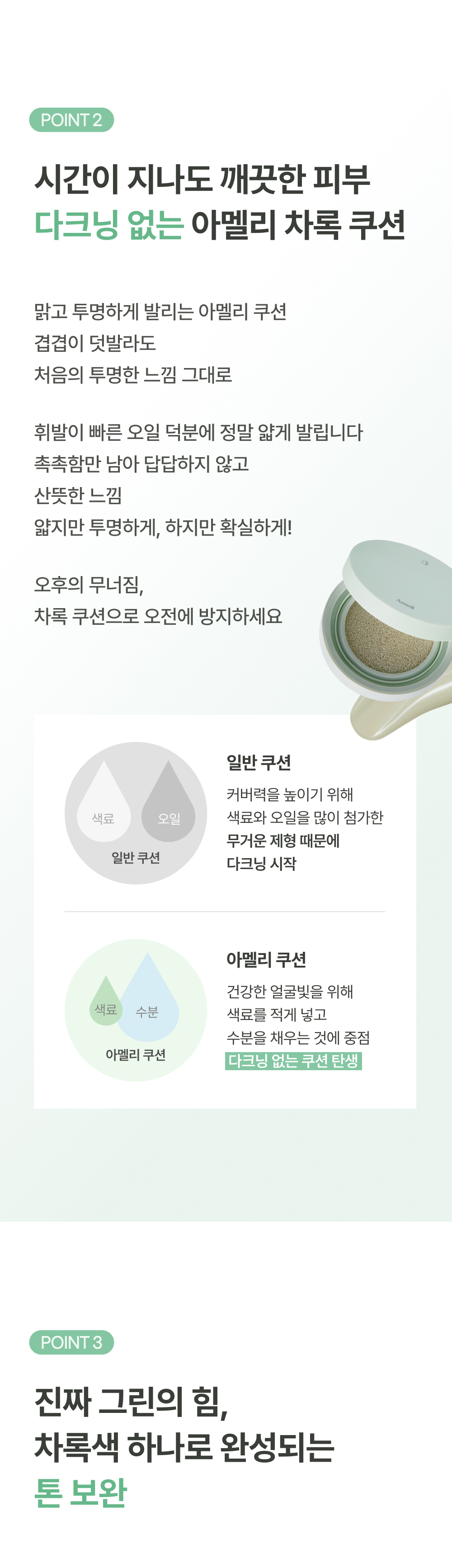 Amelie Complement Series Cushion Foundation 13g SPF42/ PA++ – Achieve a Luminous, Flawless Finish in Cool Green