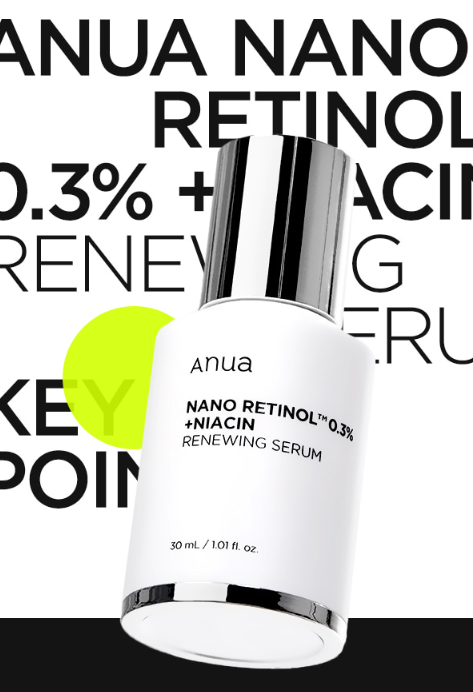 - Night-A: Anua Nano Retinol 0.3 Niacin Renewing Serum (30ml)