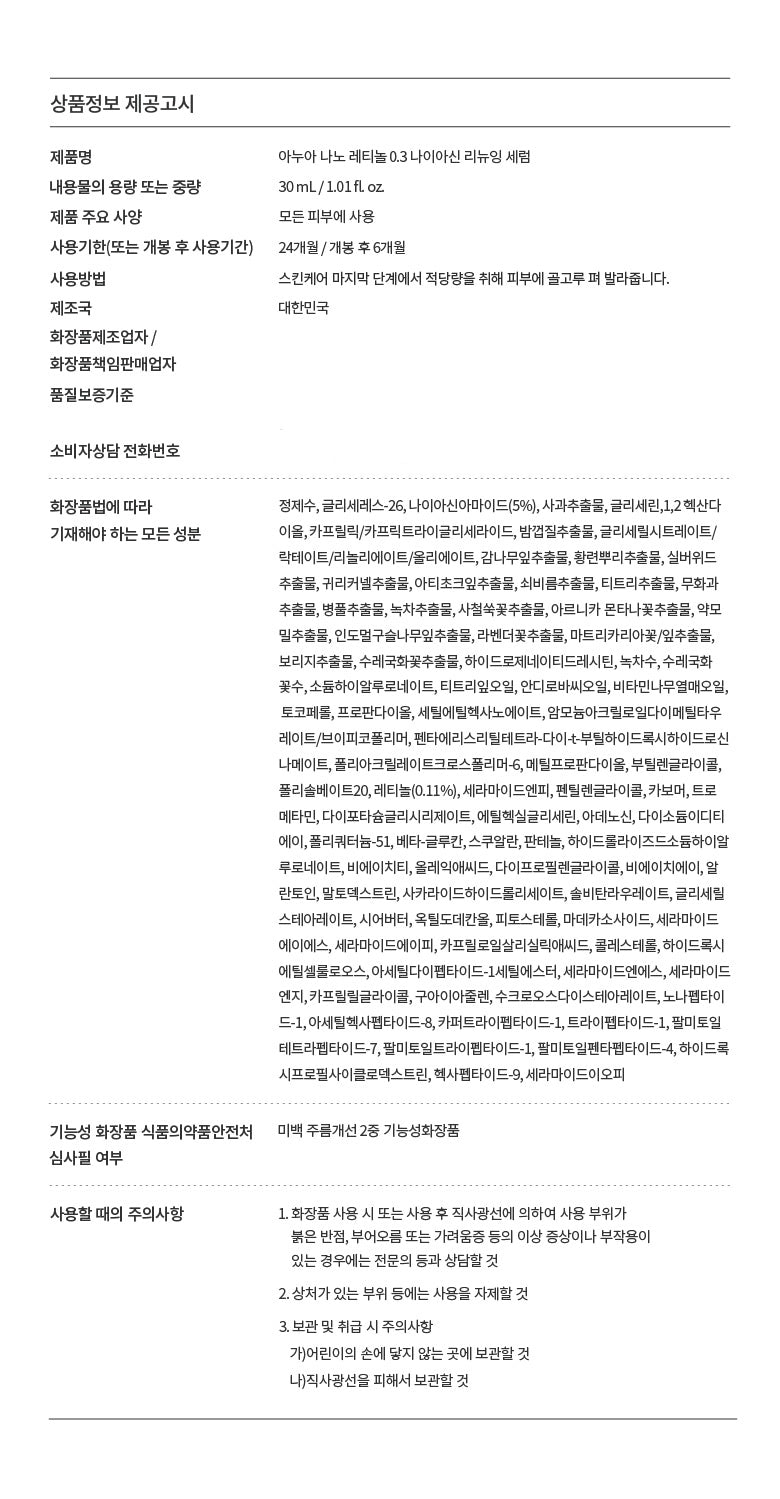 Anua Nano Retinol 0.3 Niacin Renewing Serum 30ml