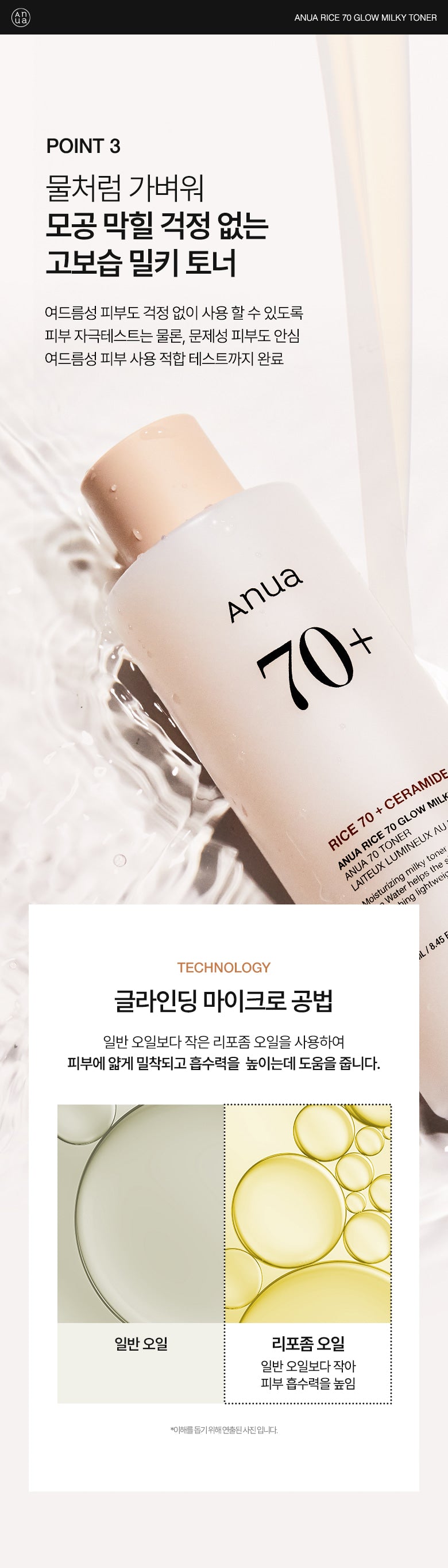 The toner features a lightweight, milky texture reminiscent of rice water. Thanks to its Grinding Micro Technology, the toner absorbs easily into the skin without clogging pores. The fine oil particles in the formula offer deep hydration without leaving a heavy or sticky residue, making it ideal for multiple layering.