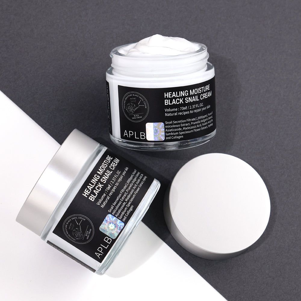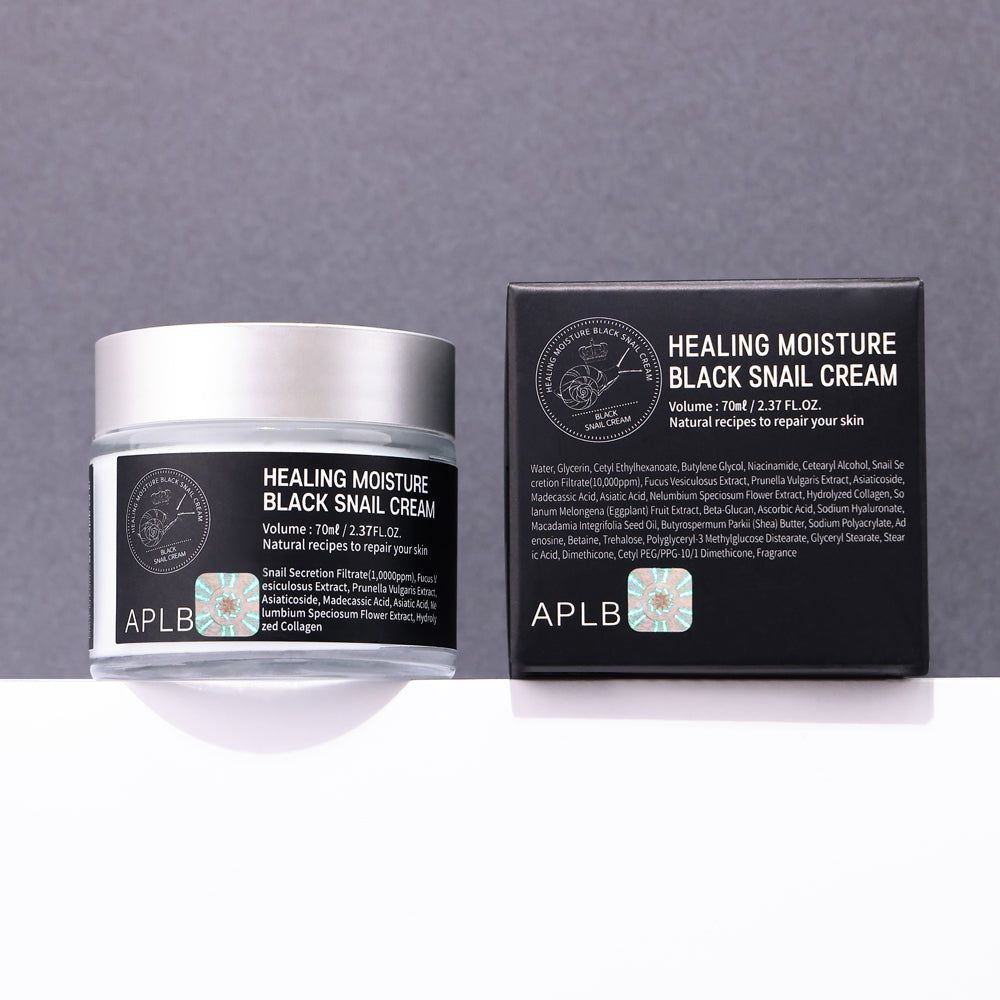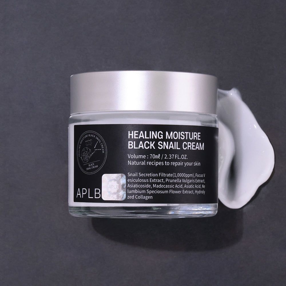 APLB Healing Moisture Black Snail Cream harnesses the unique properties of snail mucin. Rich in chondroitin, this ingredient features mucin elements that prevent moisture loss from harsh environments and maintain skin hydration.