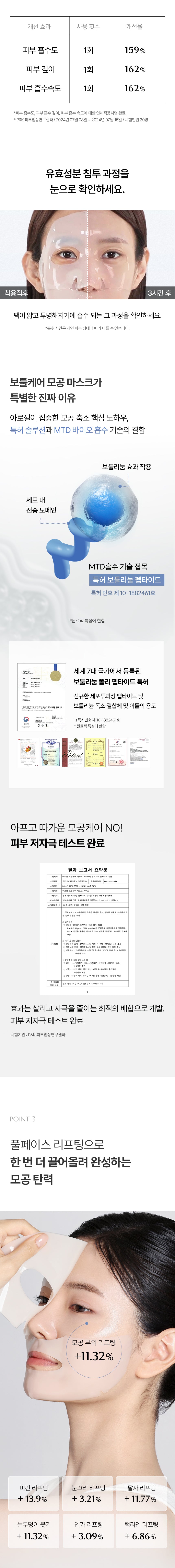 MTD (transfer domain) technology combines the active botulinum toxin protein with macromolecular intracellular transport tech, allowing for maximum absorption of skin-firming ingredients. With 243 Dalton-sized low-molecular collagen, it penetrates deeply, leaving your skin plump and refreshed.