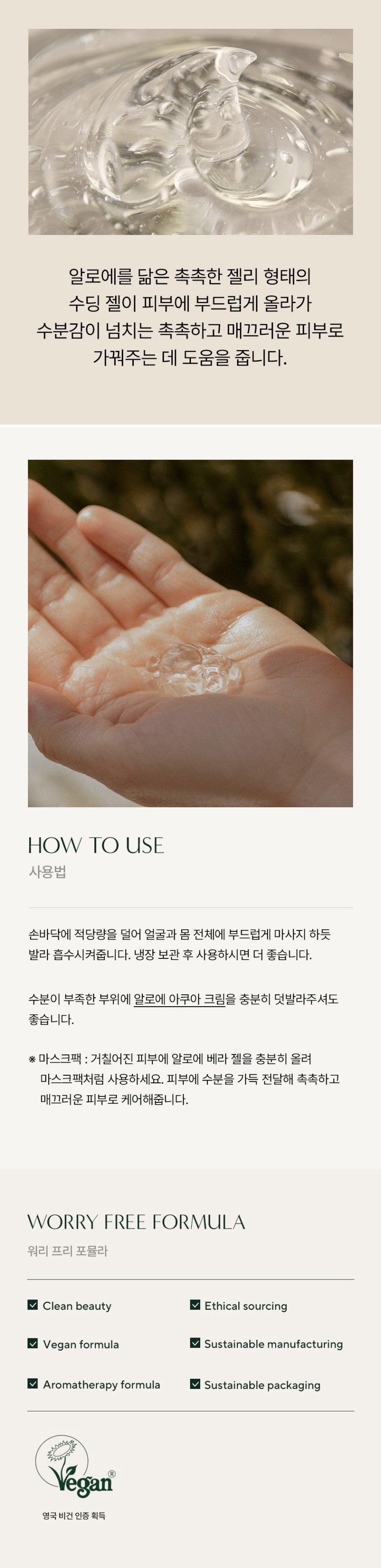 - Refreshing Gel Texture: The jelly-like, cool gel absorbs quickly into the skin, providing moisture without leaving any residue. After absorption, it leaves the skin feeling soft and matte.