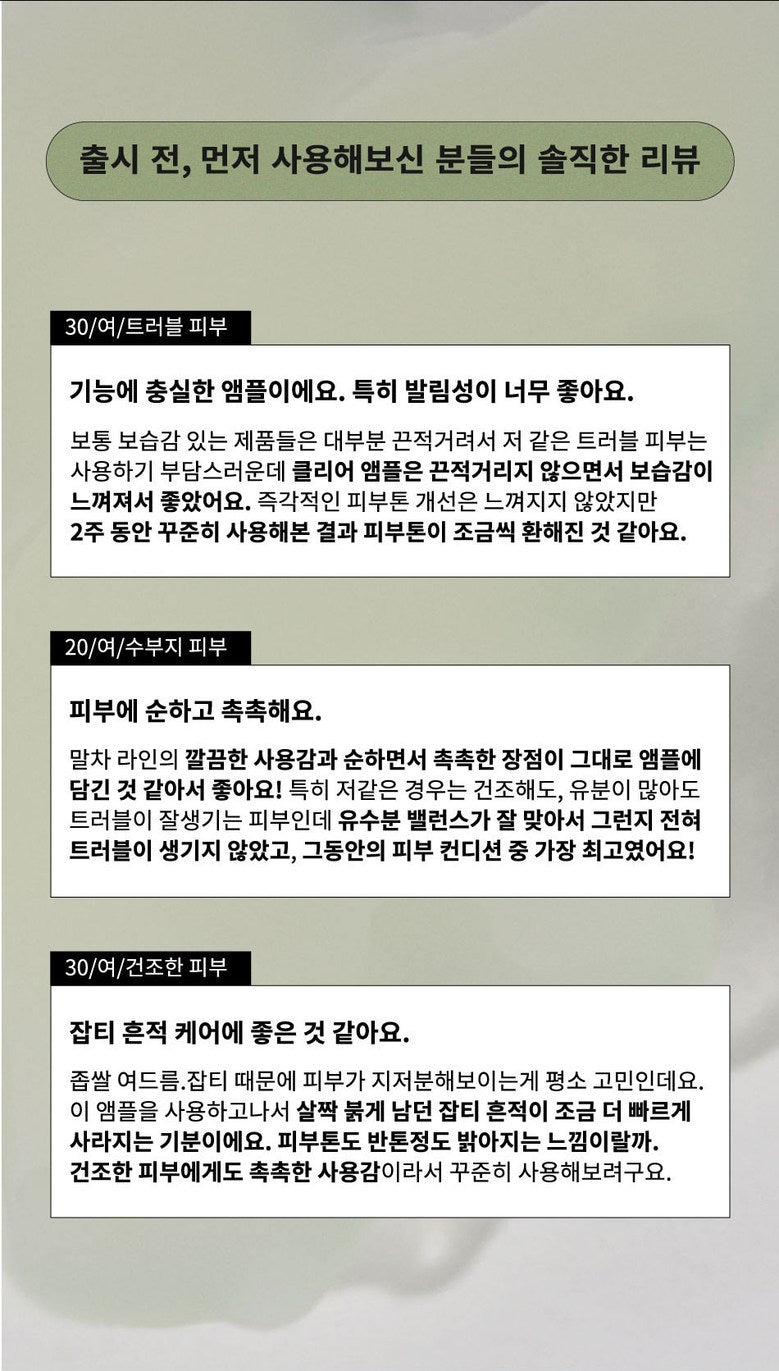 After a week of using the B-LAB Matcha Hydrating Clear Ampoule, my skin feels rejuvenated. It reminds me of the serene mornings in Kyoto, sipping fresh matcha under cherry blossoms—truly revitalizing.