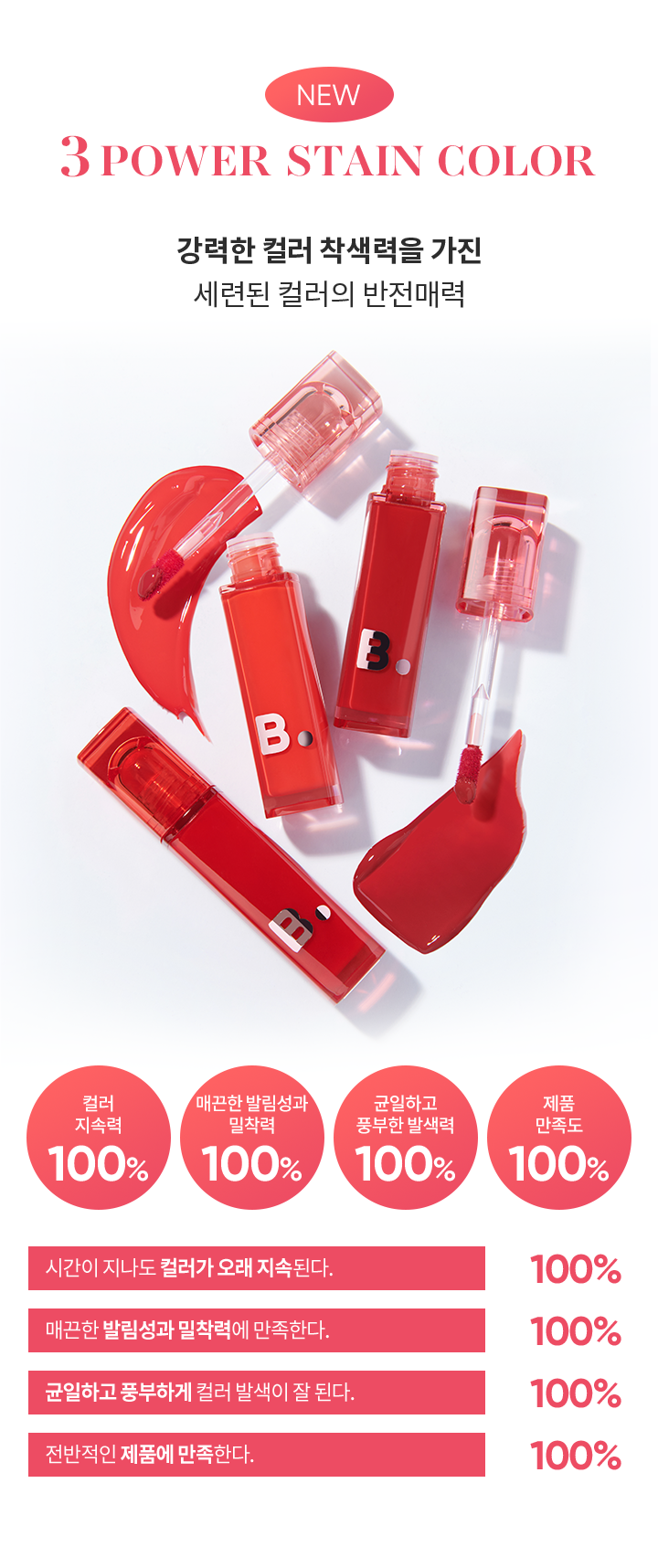 Experience the ultimate in color fixation with the Power Stain Lip Tint. This product ensures a vivid, long-lasting color that meets 100% user satisfaction.