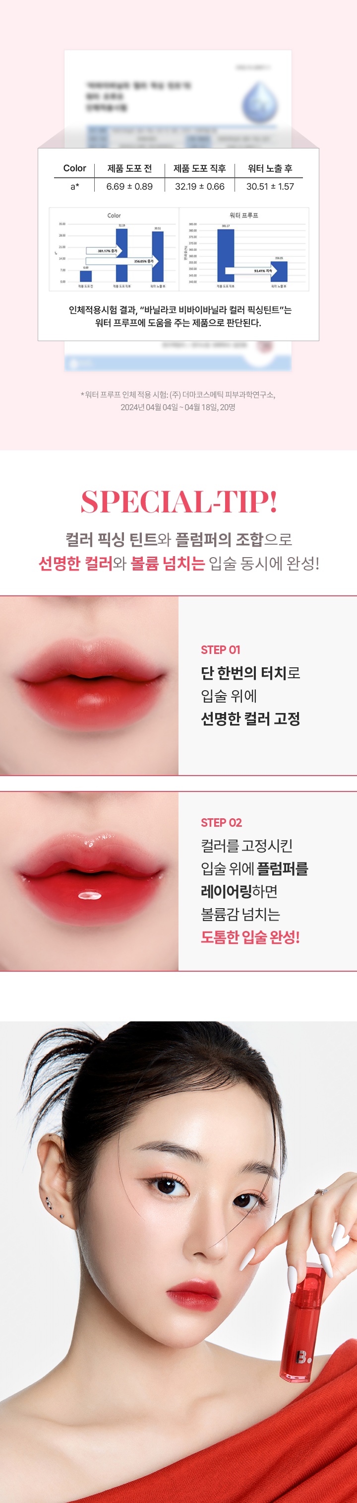 The BANILA CO Color Fixing Tint is truly impressive with its waterproof formula. I’ve worn it during humid summer days, and the color stayed vivid without fading or smudging. The watery satin texture makes application feel light and smooth, allowing for effortless layering to achieve just the right intensity. I appreciate how well it blends into my lips while providing a personalized pigmentation that suits my natural lip color perfectly. This has become my go-to lip product because of its durability and vibrant finish.