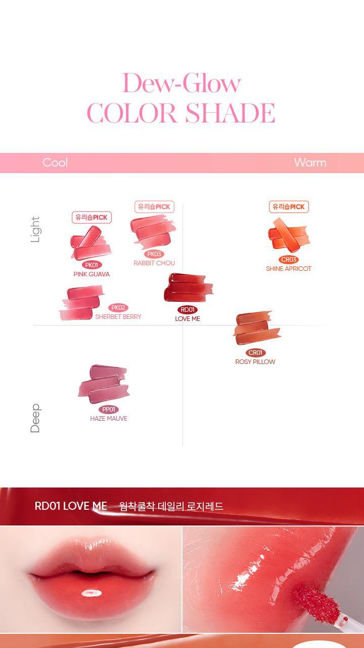 Experience an incredibly long-lasting, thick, and clear shine with our Moist Glossy Tint. This product ensures your lips shine from any angle, offering a clear, light color that brightens your face with vitality and transparency, as if covered in dew.