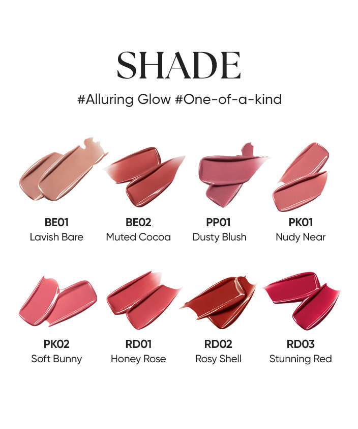 This moisture-permeable tint delivers a luminous, clear shine without any stickiness. Its lightweight texture glides on comfortably, creating radiant, dewy lips that glow from within.