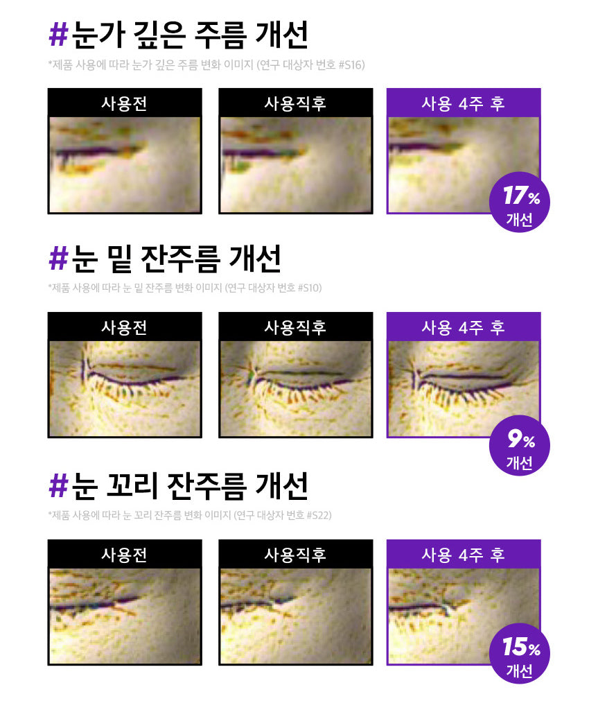- Collagen Extract (56.7%): Helps maintain firmness around the eye area, significantly reducing the appearance of eye lines and wrinkles.