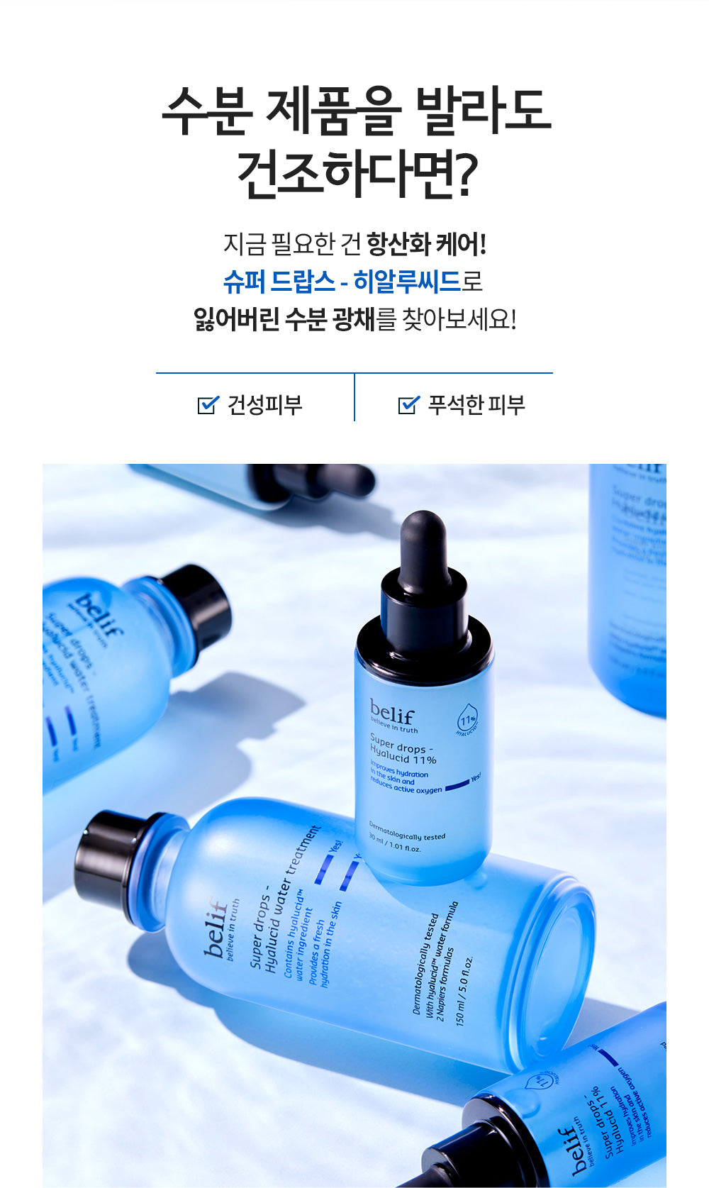 After moving to San Francisco’s foggy climate, I struggled with dry patches. Belif Super Drops Hyalucid Water Treatment changed everything! It’s lightweight and instantly quenches my skin. Now it feels supple and bouncy, even when the wind is chilly!