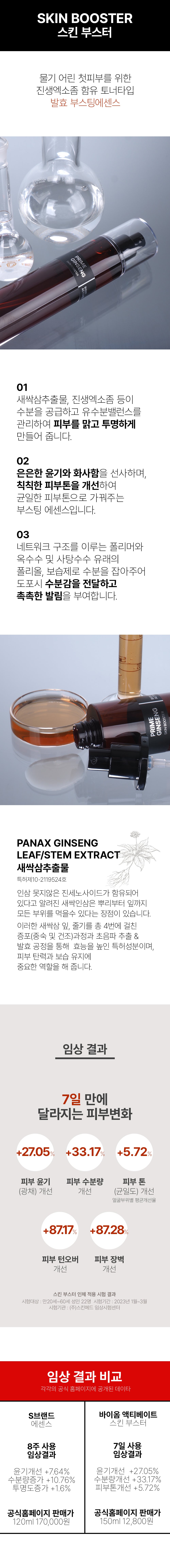 Experience the efficacy of young ginseng leaf/stem extract (Patent No. 10-2119524), a patented ingredient that has been meticulously processed through a four-step process of steaming, mid-ripening, drying, ultrasonic extraction, and fermentation. This extract plays an important role in maintaining skin elasticity and moisture, helping you maintain a youthful and plump complexion.