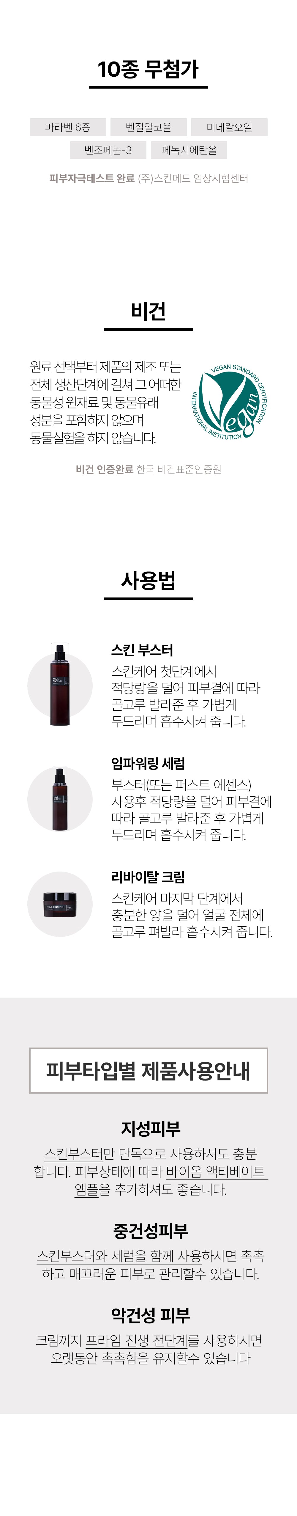 Our commitment to purity and ethical practices is evident as we avoid 10 types of harmful ingredients, ensuring our products are suitable for even the most sensitive skin. Proudly vegan certified by the Korea Vegan Standard Certification Institute, our formulas do not contain any animal-derived ingredients or undergo animal testing.