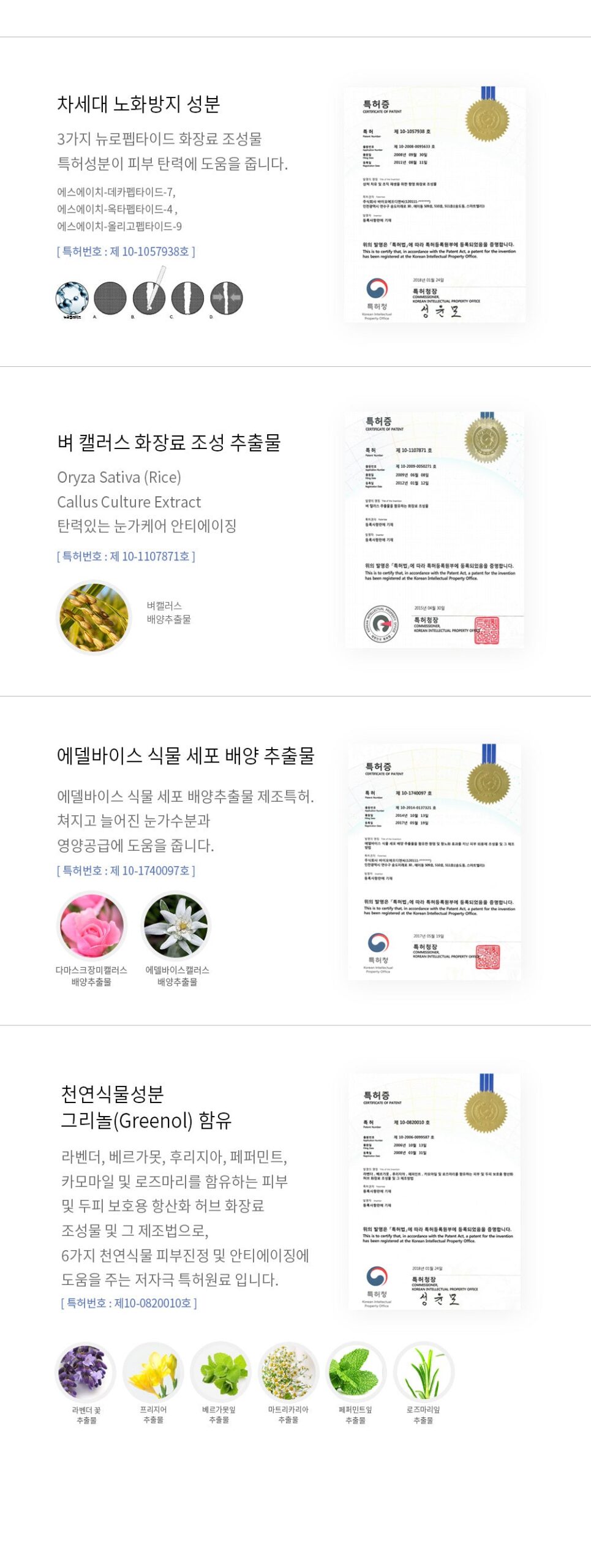 It is a hypoallergenic patented ingredient made from 6 natural plants that helps soothe the skin and anti-aging. (Patent No. 10-0820010)