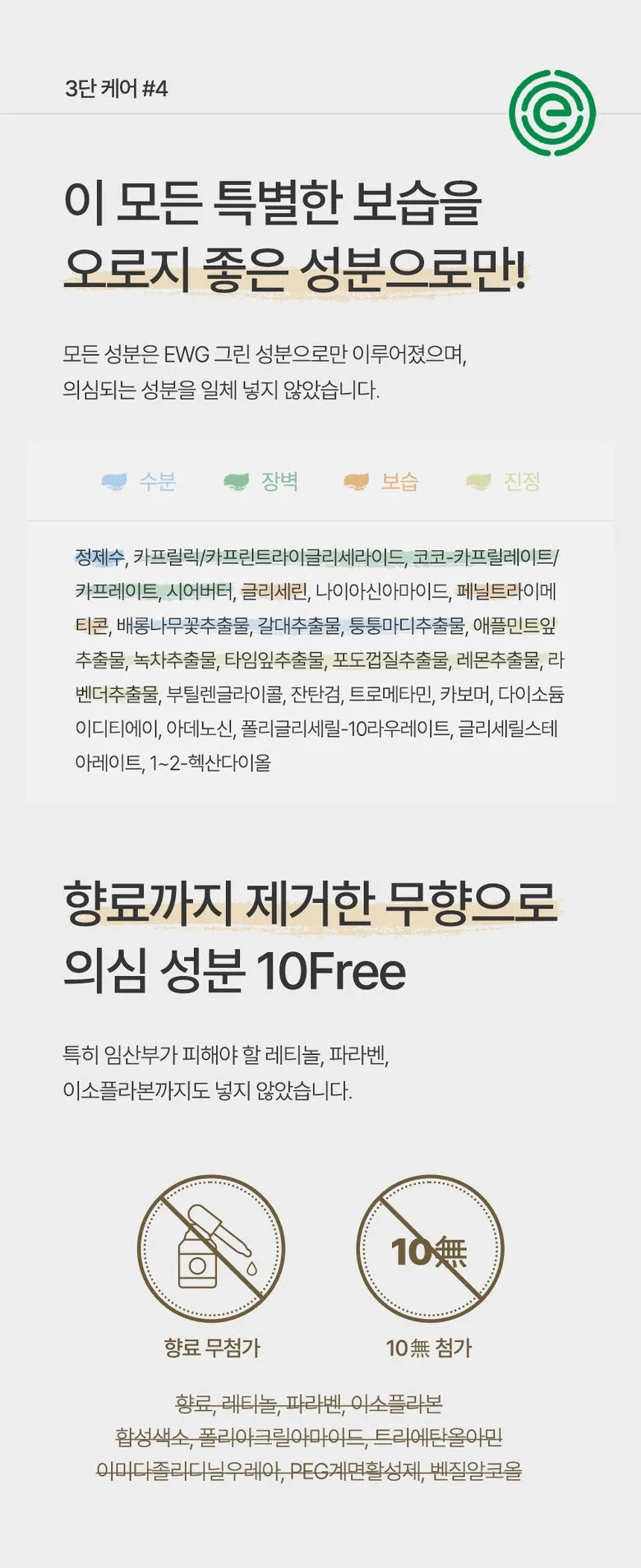 All ingredients are made up of only EWG green ingredients, and no suspicious ingredients are included.
