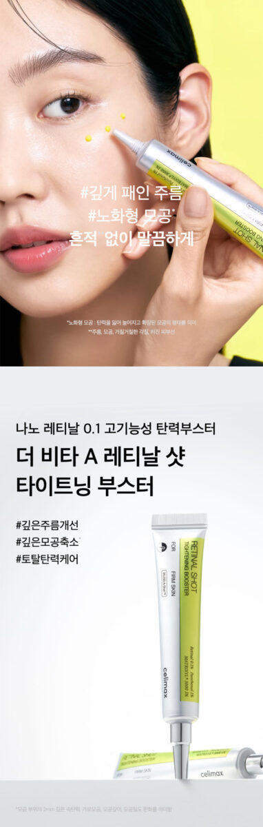 The Celimax Retinal Shot Tightening Booster has become an essential part of my skincare routine. After just a week, I noticed significant improvements in my skin’s texture and elasticity. The nano-retinal technology worked wonders on my deep wrinkles, especially around my forehead and eyes. I appreciated how quickly it absorbed without leaving any residue behind; the lightweight formula is perfect for layering under other products. Additionally, the presence of Matrixyl® 3000 peptides seems to enhance firmness noticeably—my face feels tighter yet hydrated throughout the day.
