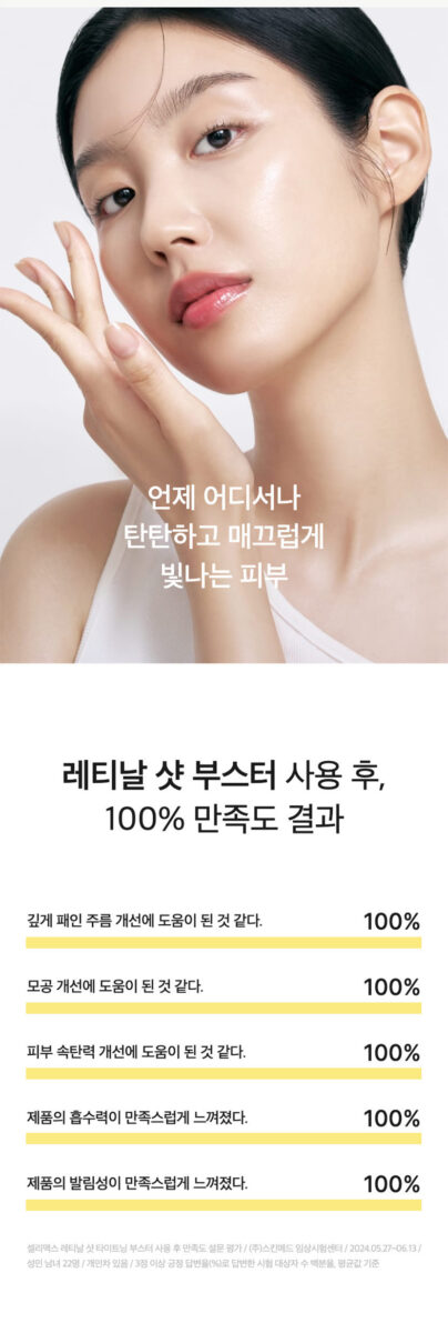 初めてCelimaxのRetinal Shot Tightening Boosterを試してみましたが、正直なところ不安でした。抗老化製品は数多く存在しますが、本当に効果があるものには出会えませんでした。しかし、このブースターを一週間使ってみたら驚きの変化に気づいたんです!顔全体に柔らかなハリ感が蘇り、深いしわや毛穴も明確に改善されました。それからというもの、朝鏡を見る度自分自身について少し自信満々になっています。なんとスキンケアによるパフォーマンスは実証済みとのことで、高速細胞更新で若返りとはこれほど強力なのかと思わせます。この投資価値、大ありです。