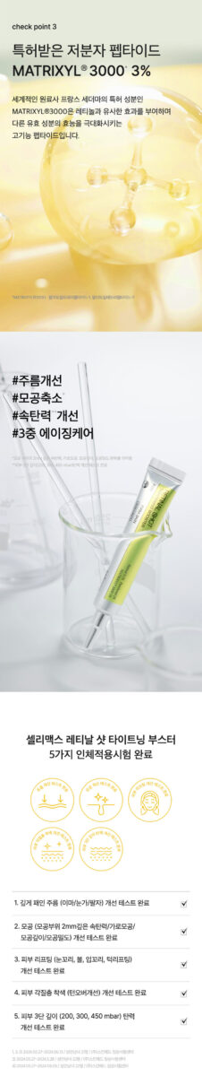 The Celimax Retinal Tightening Booster is a next-generation anti-aging solution designed to target deep wrinkles, enlarged pores, sagging skin, and rough texture. Powered by nano-retinal technology and Matrixyl® 3000 peptides, this high-performance booster delivers visible results in wrinkle reduction, skin lifting, and elasticity improvement.