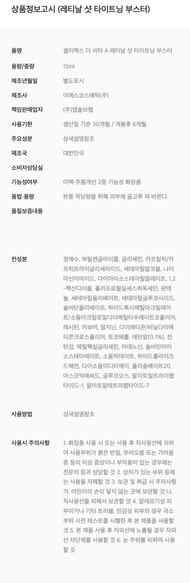 12 reviews for celimax Retinal Shot Tightening Booster 15ml