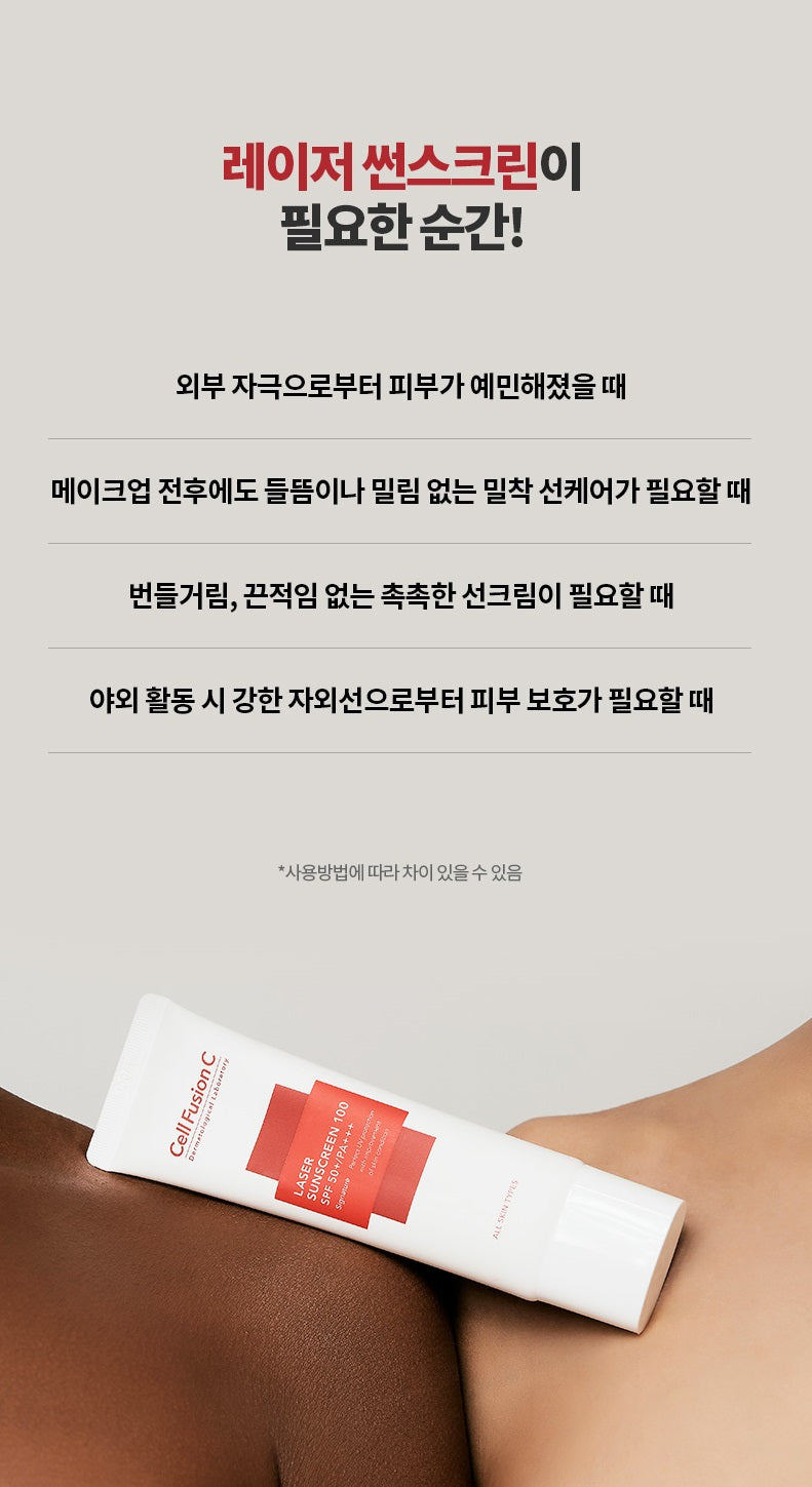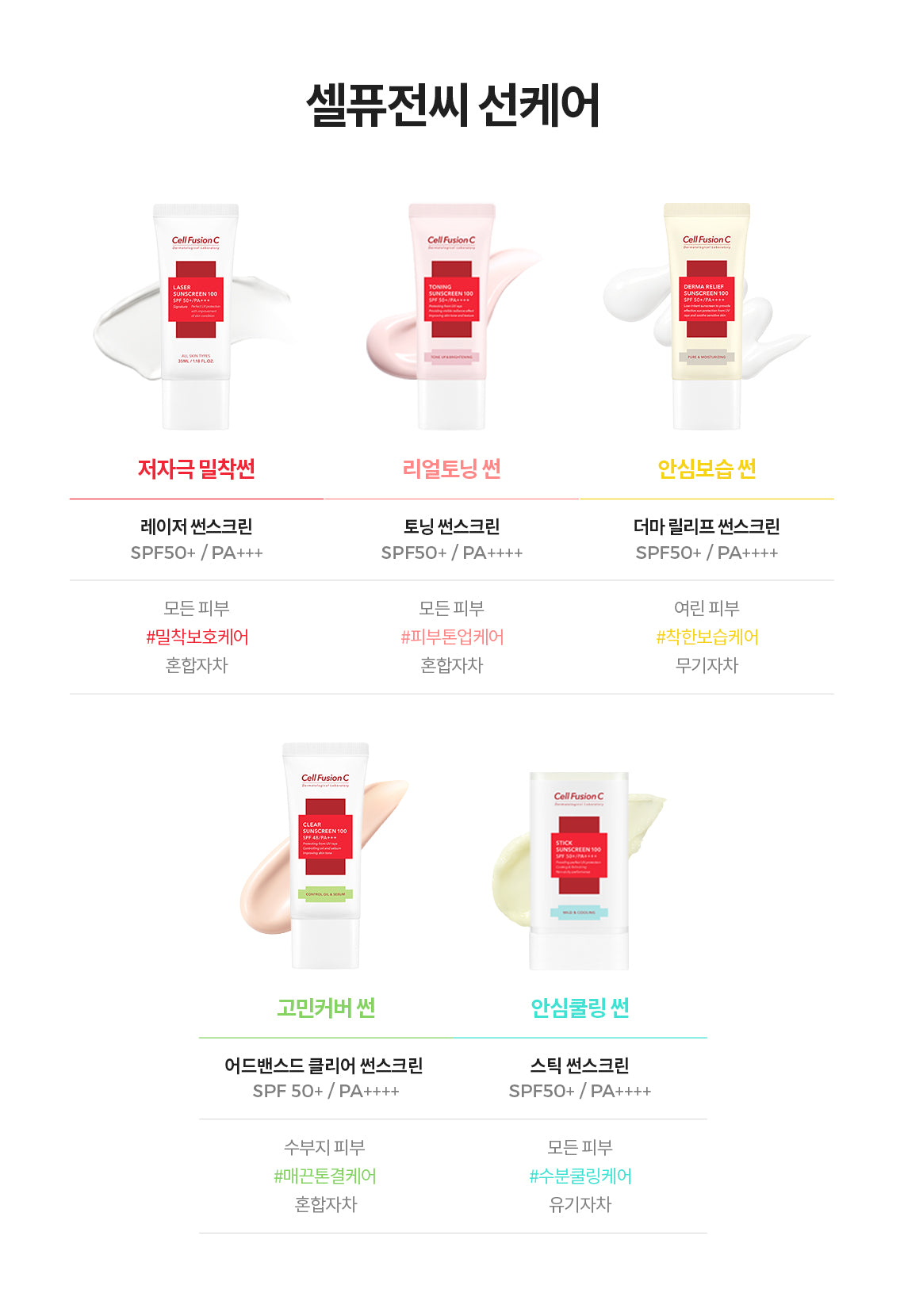 Cell Fusion C Laser Sunscreen makes skin healthy through perfect protection and energy enhancement.