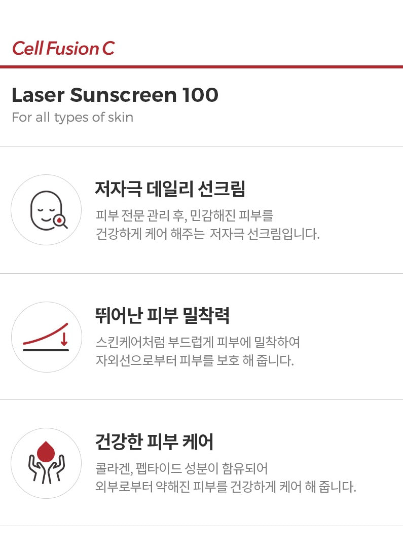Cell Fusion C Laser Sunscreen makes skin healthy through perfect protection and energy enhancement.