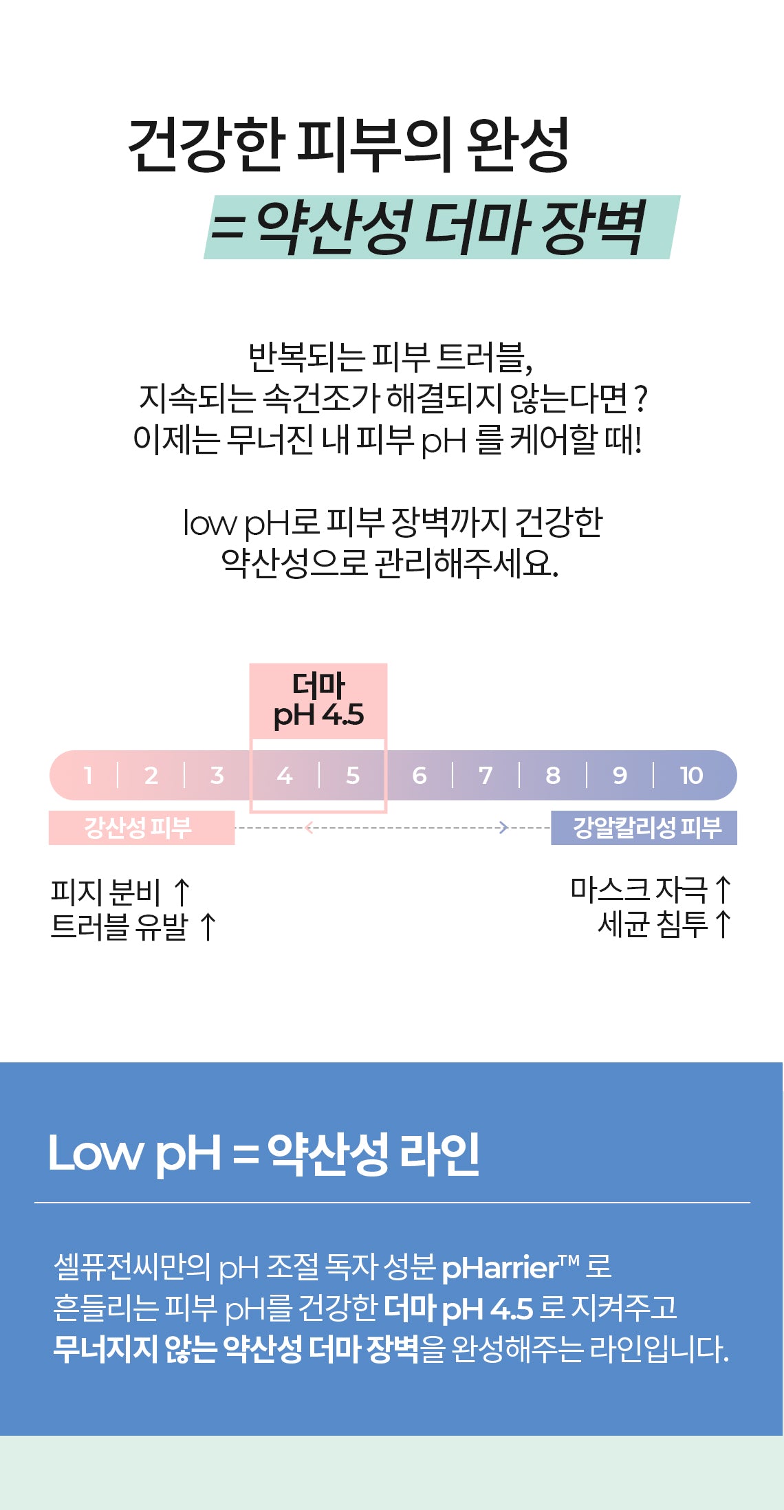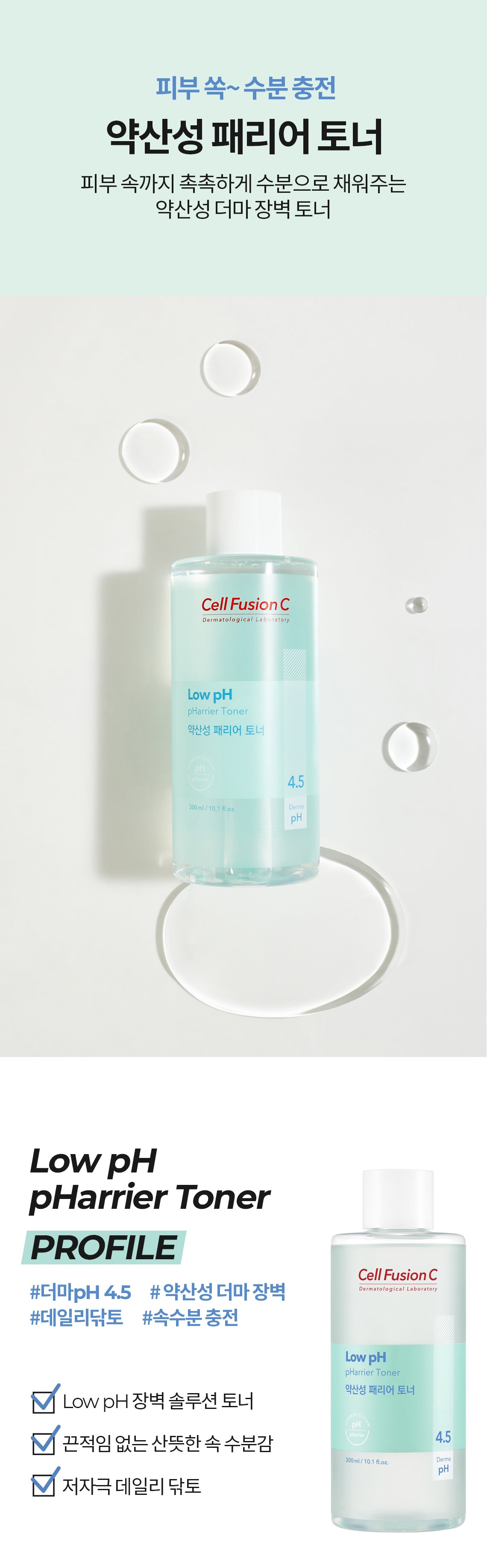 Low pH pHarrier Toner is a healthy mild acidic toner that strengthens the skin barrier with 500,000ppm of mild acidic derma water.