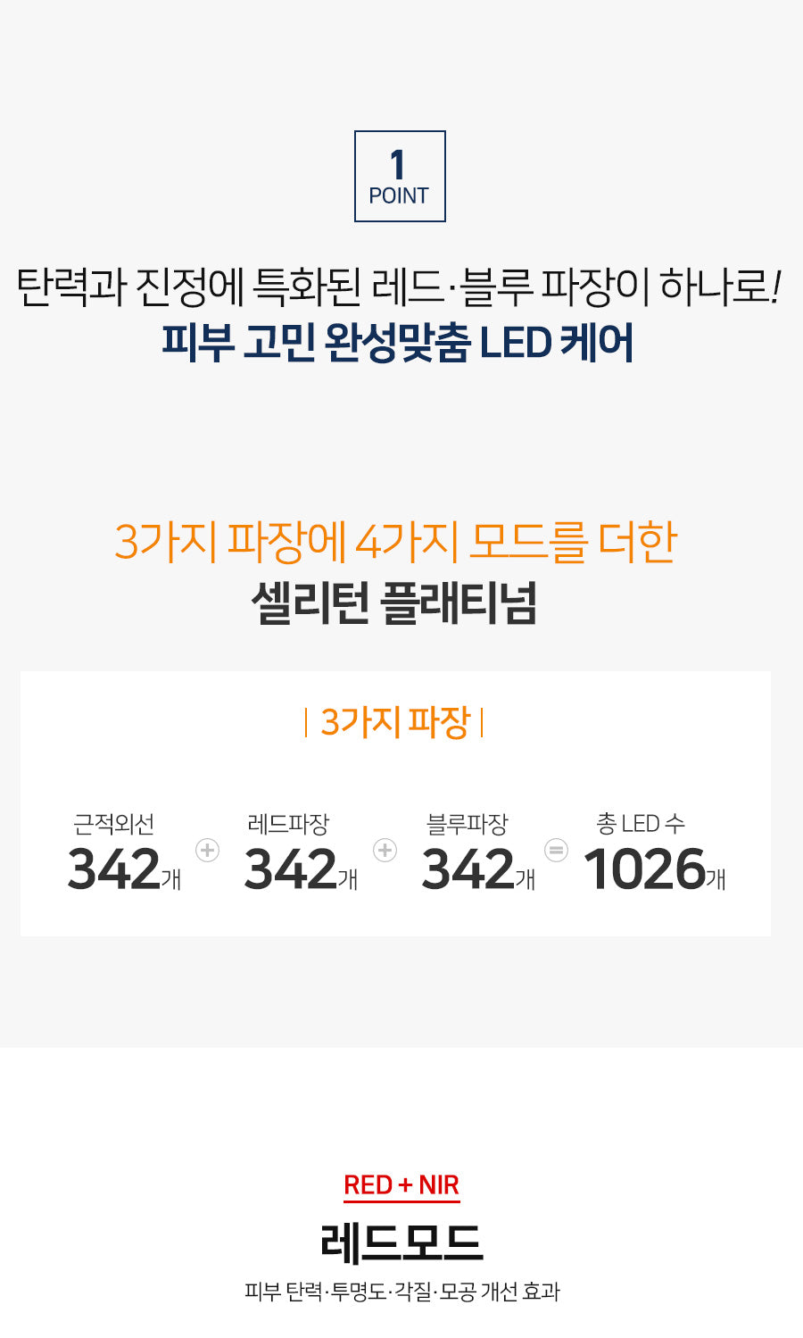 - RED+NIR Mode: Targets elasticity, enhancing skin transparency, reducing dead skin cells, and improving pore appearance.
