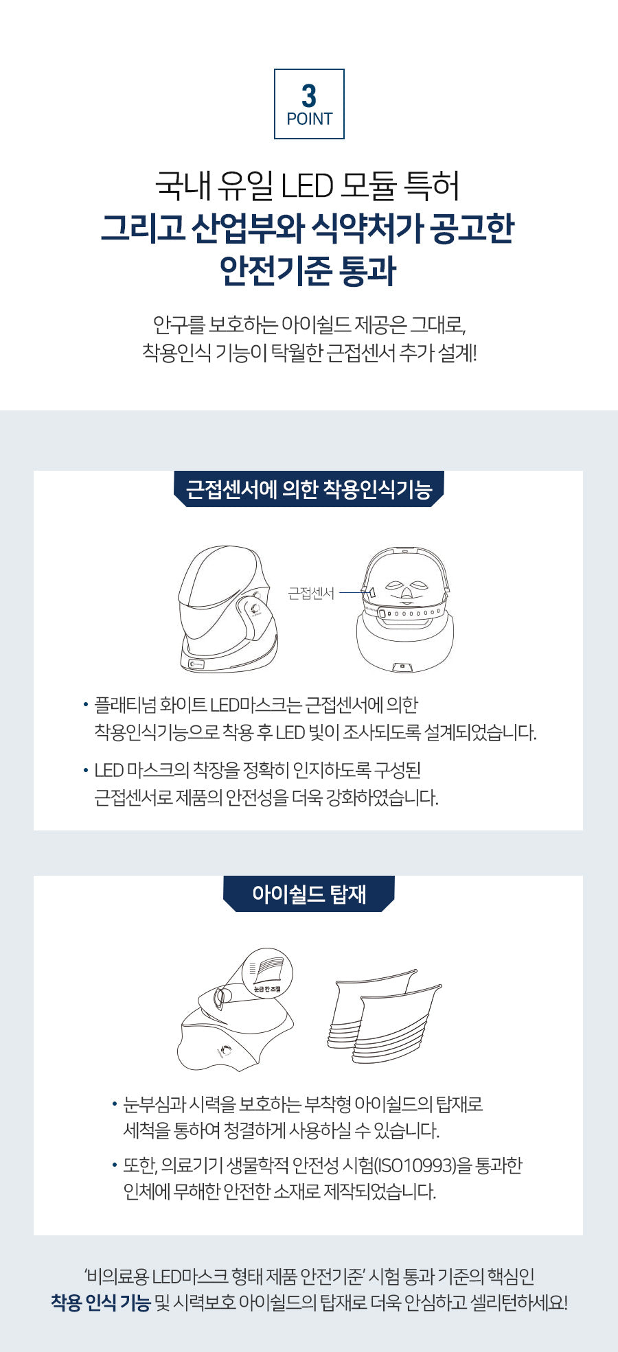 - Successfully passed safety standards set by the Korean Ministry of Trade, Industry and Energy, and the Ministry of Food and Drug Safety.