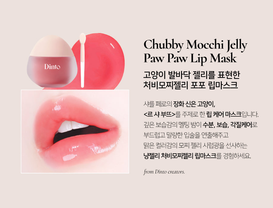Chubby Mocchi Jelly Paw Paw Lip Maskはまるで柔らかな猫の足に触れるかのような感覚!驚くほど潤滑剤が唇を包み、保湿力も素晴らしい。日中用でも夜のお供にも最高です。