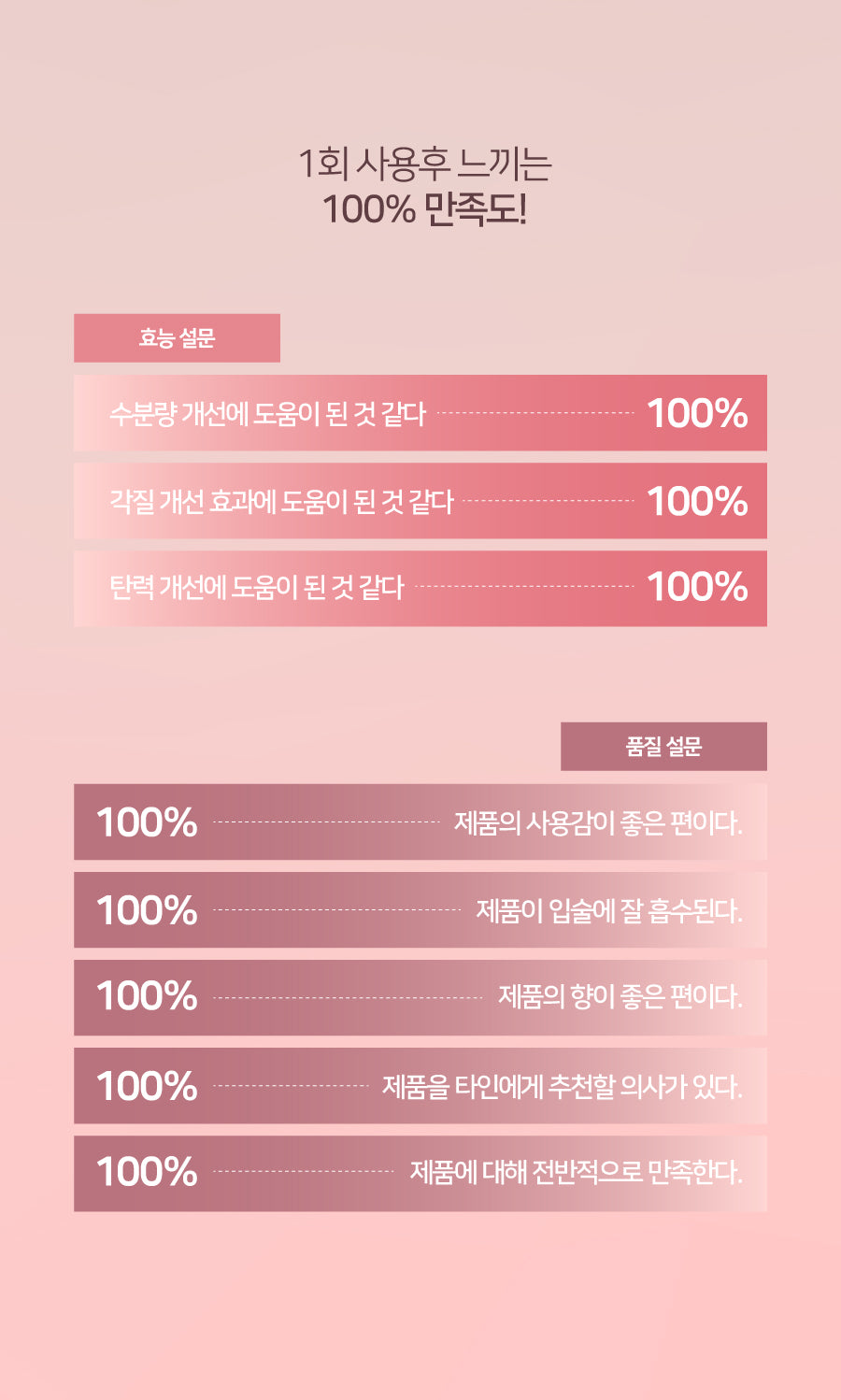- Texture & Elasticity Improvement: 100% noted smoother, more supple lips.