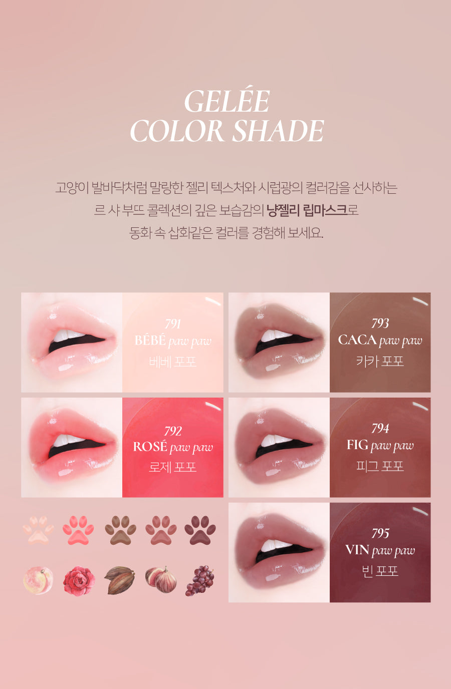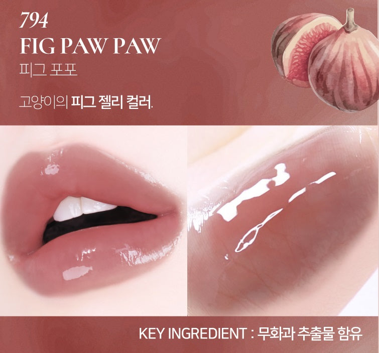 The balm’s plush jelly texture melts effortlessly onto your lips, providing deep moisture and care while creating a vibrant, translucent sheen that resembles the soft, cushiony look of cat paw pads. -