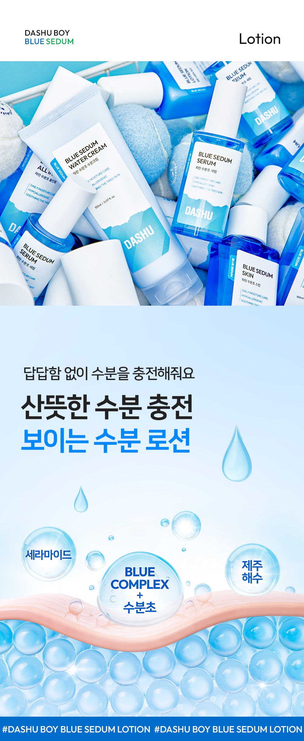 Experience ultimate satisfaction with DASHU Boy Blue Sedum Lotion, designed to deeply moisturize and nourish your skin. Perfect for those with dry skin, this lotion provides a soothing experience without tightening your skin, reducing dead skin cells, and balancing skin oiliness for a smooth and hydrated complexion.