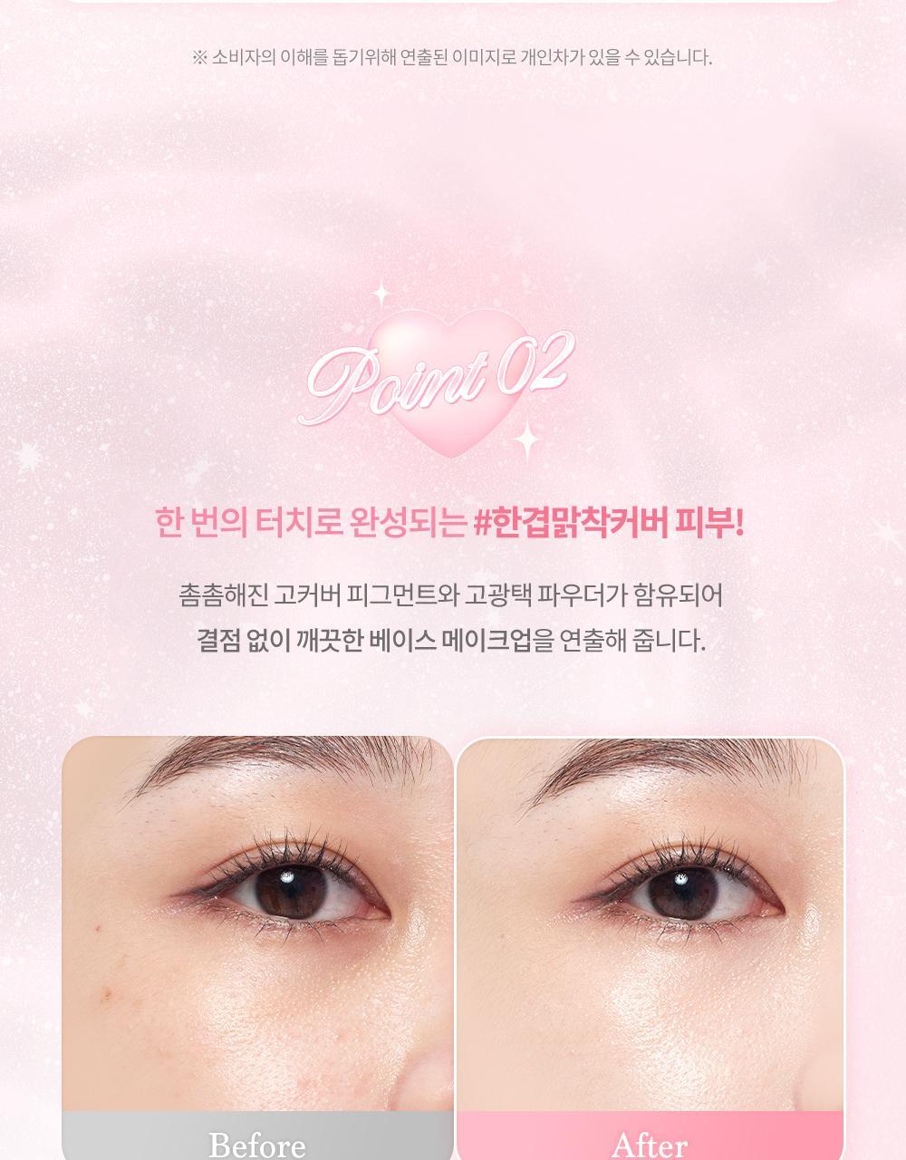 Experience a smooth and glossy skin finish with the tangle jelly texture that fits closely to the skin. This cushion foundation provides a seamless, radiant look.