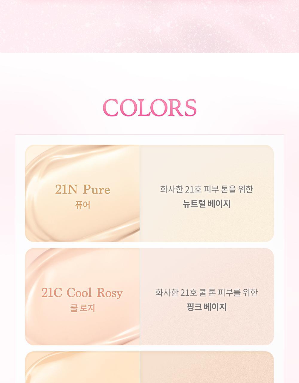 This foundation provides a clear and light layer of coverage that hides imperfections. With high-coverage pigments and high-gloss powder, it creates a flawless, clean base makeup that covers blemishes, freckles, pores, and uneven skin texture.