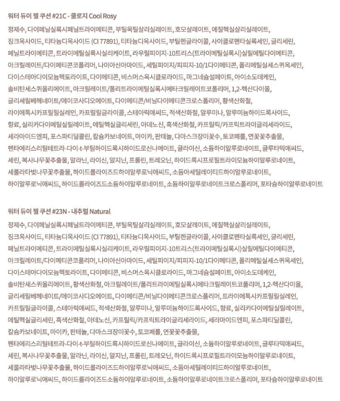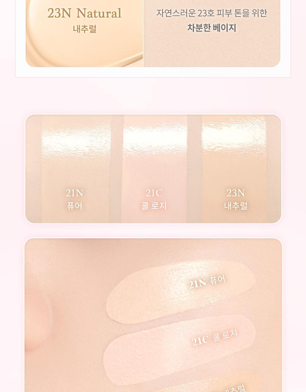 The Clear Radiance Cushion Foundation contains 60% essence ingredients, offering a hydrating glow from within the skin. Key ingredients include: