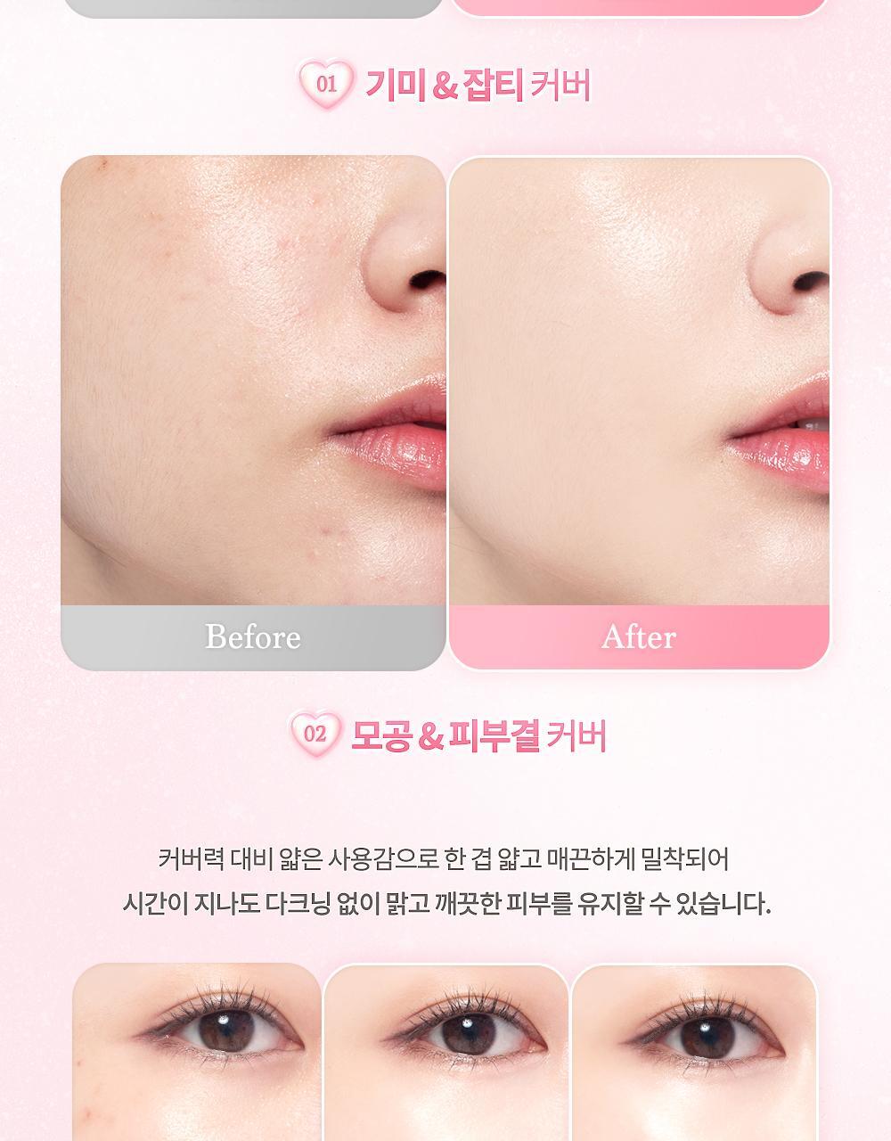 This foundation provides a clear and light layer of coverage that hides imperfections. With high-coverage pigments and high-gloss powder, it creates a flawless, clean base makeup that covers blemishes, freckles, pores, and uneven skin texture.