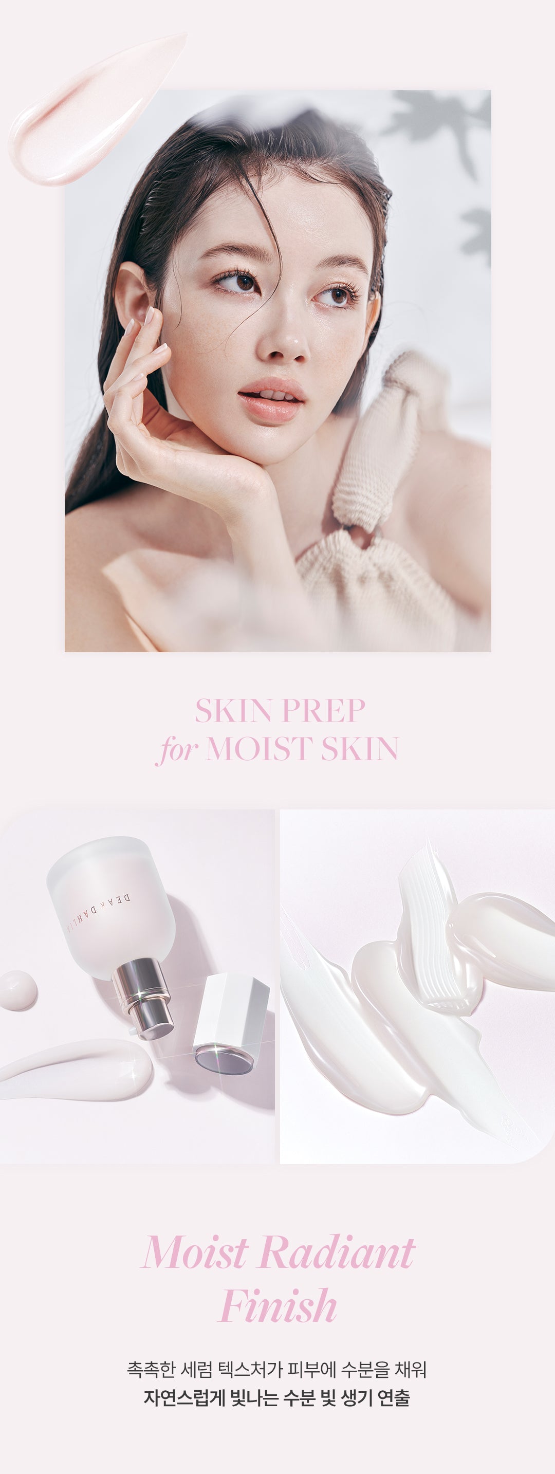 - Take an appropriate amount of DEAR DAHLIA Prime Layer Skin Prep and gently spread it evenly across your entire face.